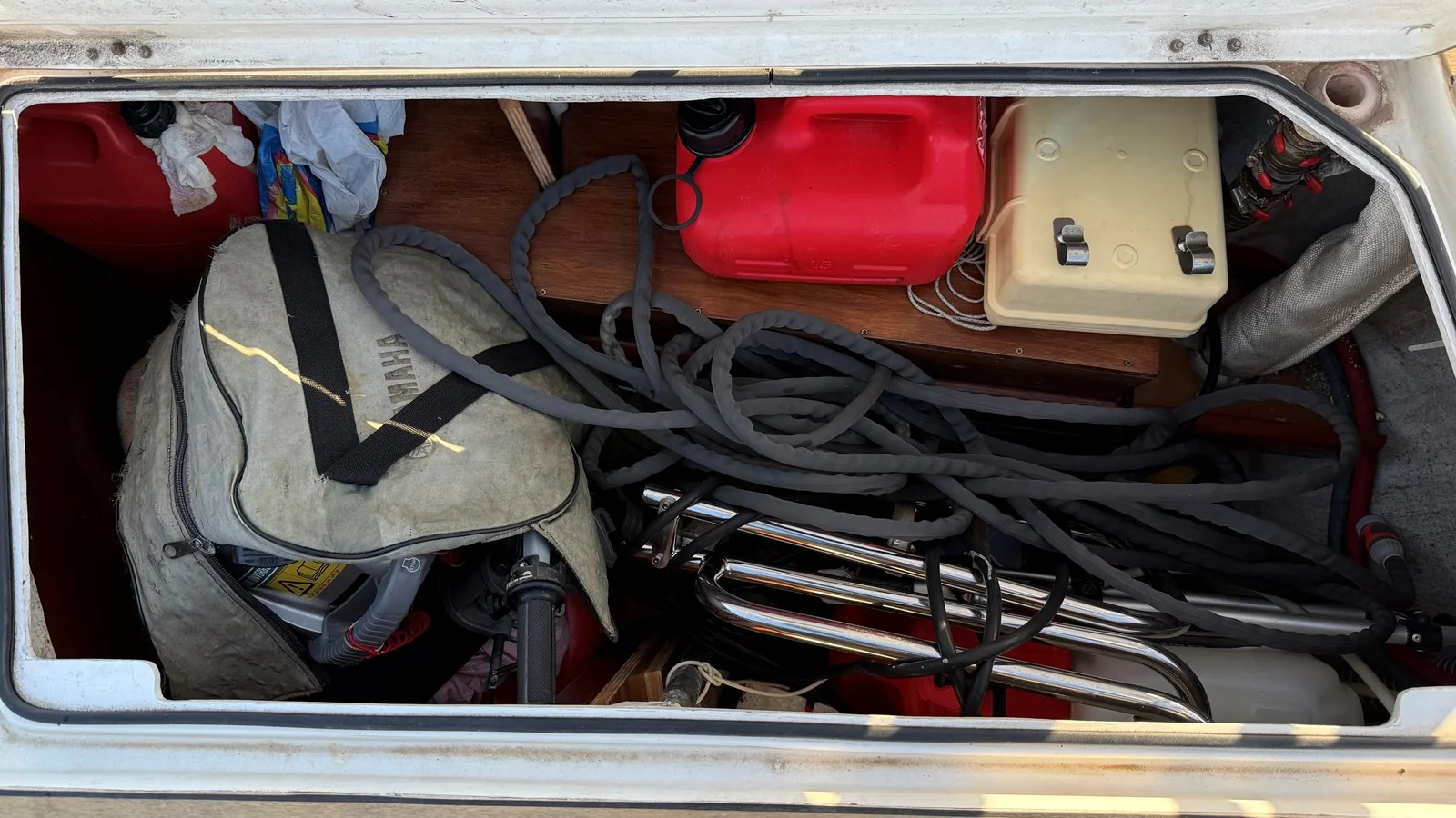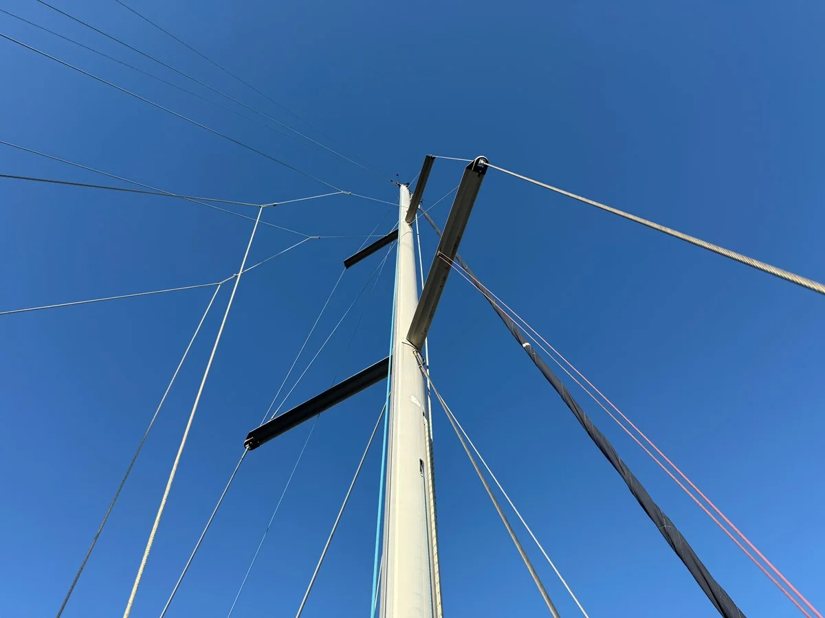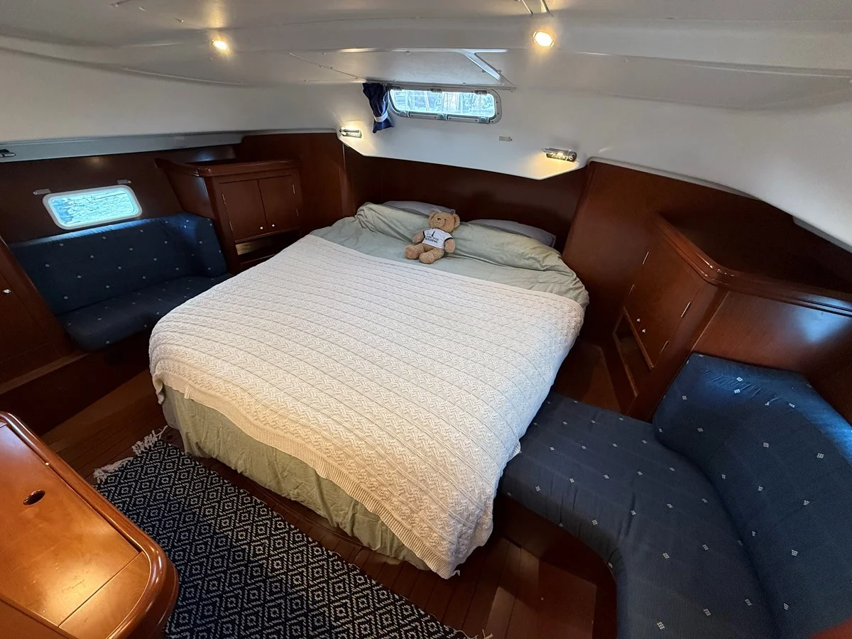 New seacocks (2024), refreshed external teak (2025), professional sail cleaning