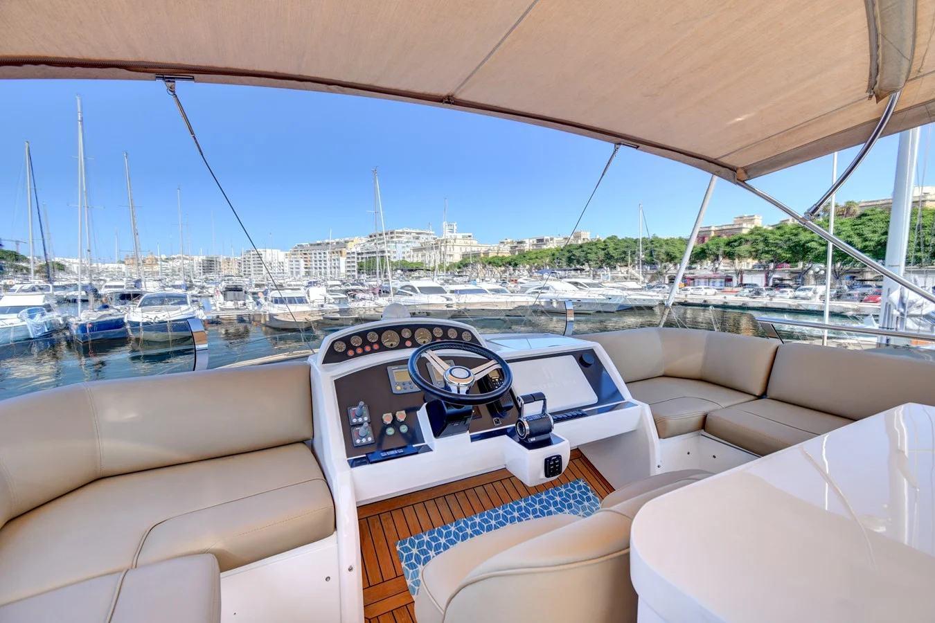 Accommodation:A well-considered 4-cabin layout offers a full-beam master suite, forward VIP cabin, and twin guest cabin to starboard. An optional aft crew cabin is also available. The open-plan saloon flows seamlessly into the aft cockpit, while the spacious flybridge features ample seating, sunpads, and a wet bar – perfect for entertaining.