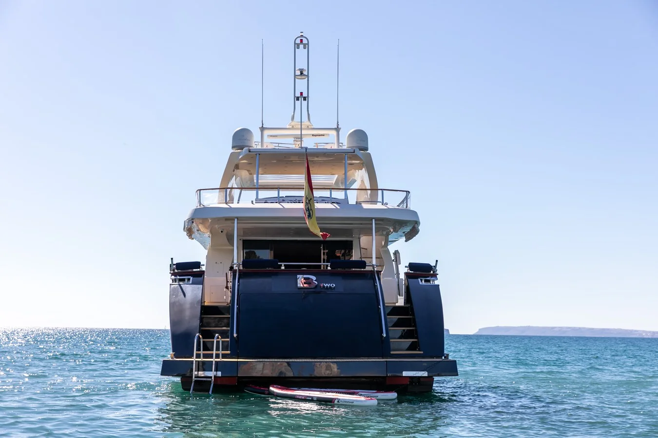 Powered by twin MTU 2000 HP engines, B TWO achieves a top speed of 24 knots and a cruising speed of 14 knots. This yacht guarantees an unforgettable charter experience, combining luxury, comfort, and endless opportunities for relaxation and recreation.