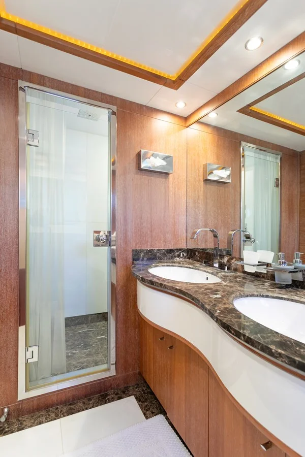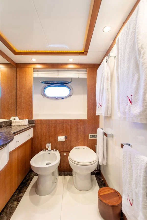 Accommodating up to nine guests in four spacious cabins on the lower deck plus an extra cabin space on the main deck that can be an office, Gym, movie room or a 5th cabin (Now it has a sofa bed)