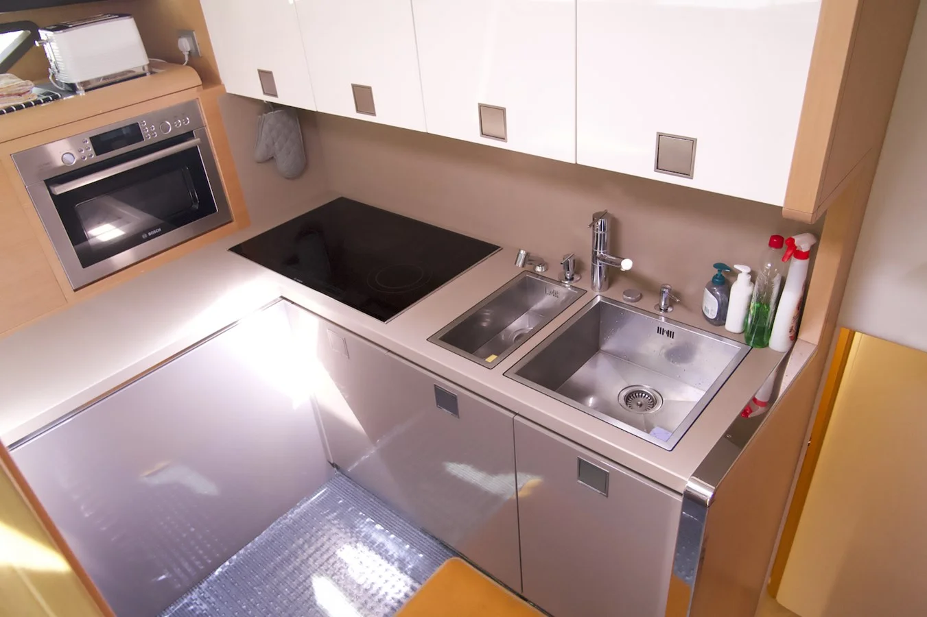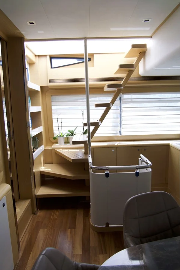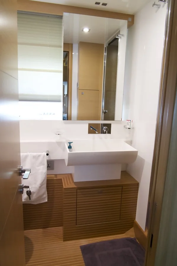 One of the best interior layout offered on a yacht of this size, allowing complete privacy between the salon / dining and galley / crew area.