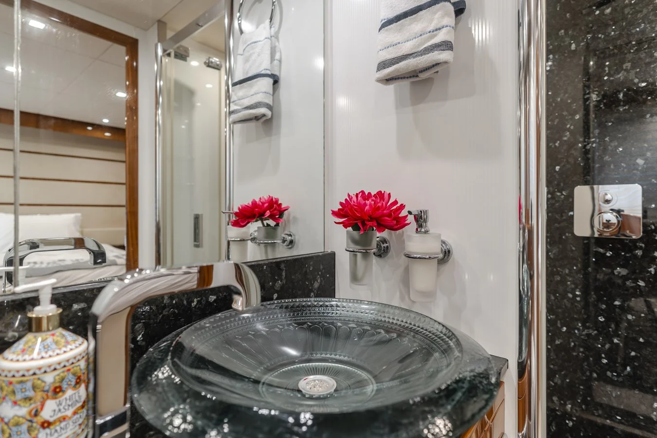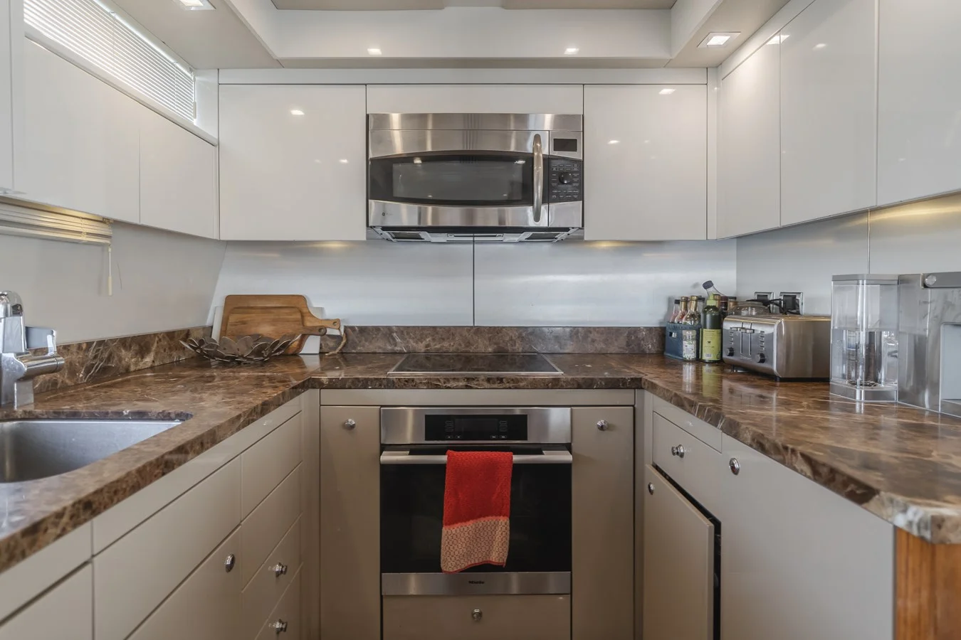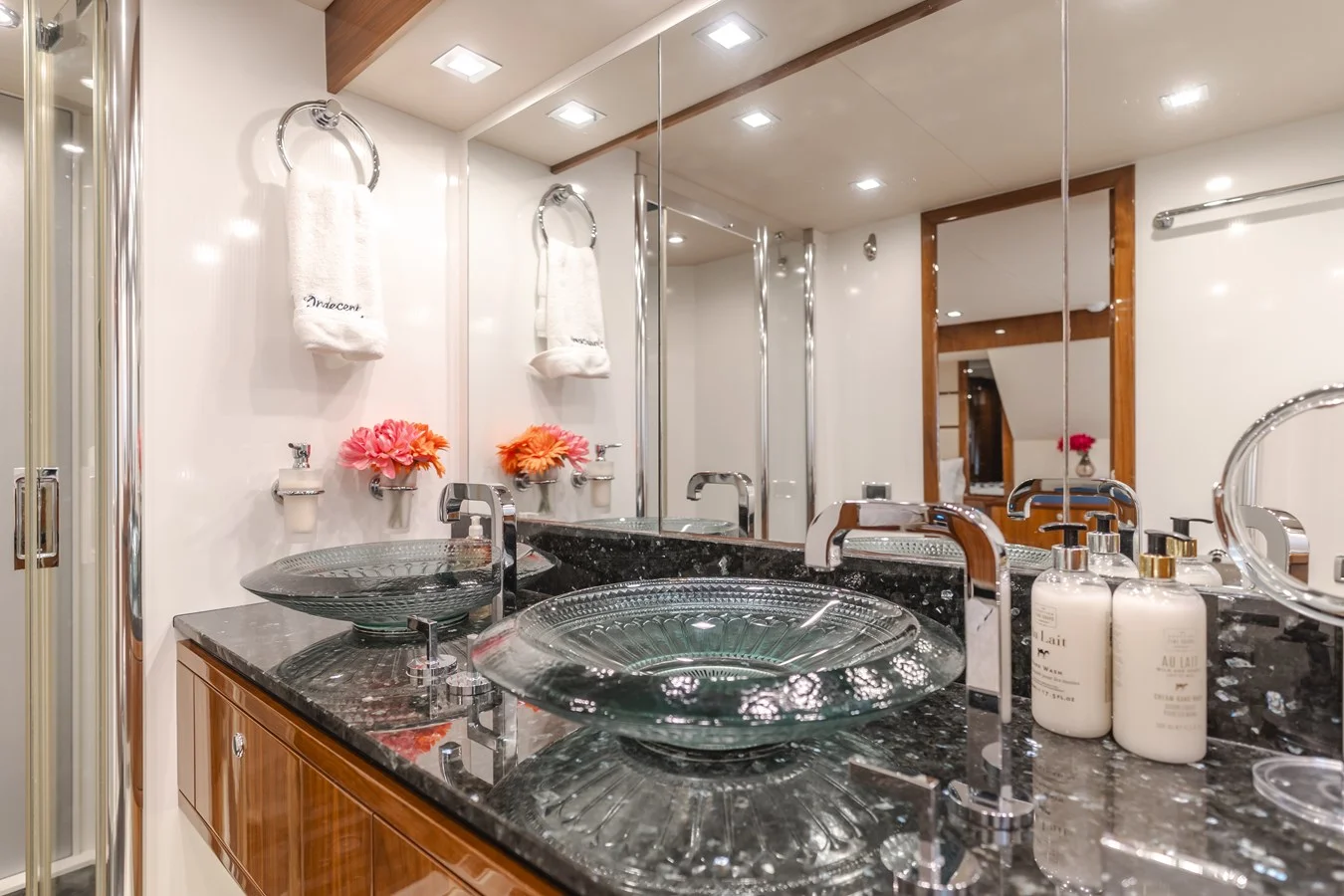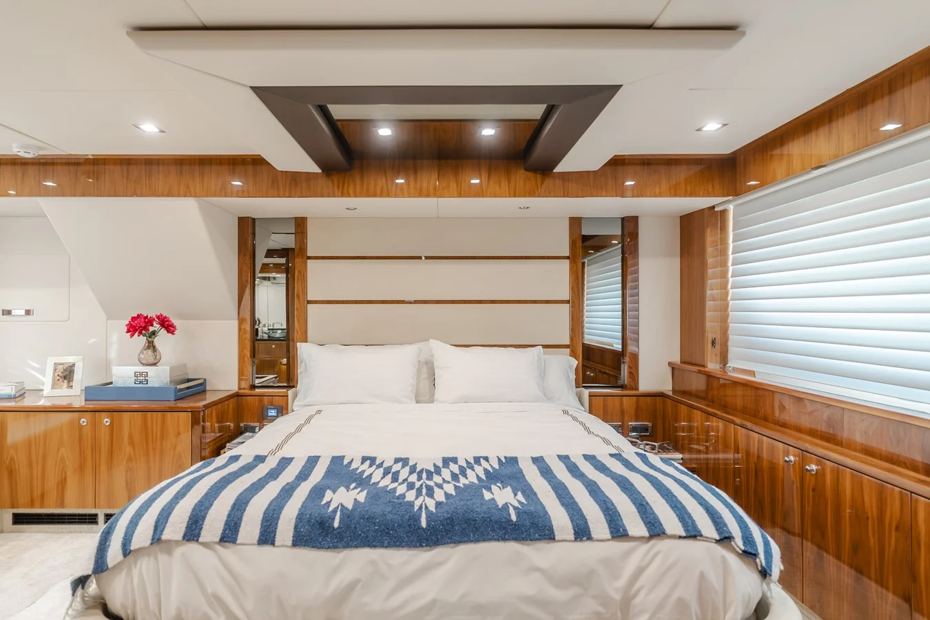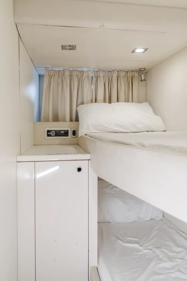 "Indecent Proposal 4" has been cared for meticulously by her owner, with no expenses spared throughout the years. All mechanical services are up to date on her MTU main engines and brand-new upgraded Kohler generators. She boasts four large staterooms, each with ensuite heads, and a day head on the main deck. Equipped with zero-speed fin stabilization, ensuring a comfortable ride underway, or at anchor.
