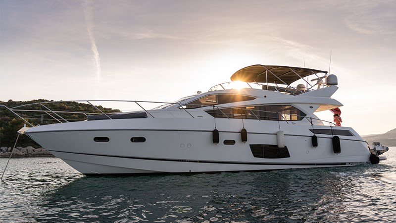 Cardano is fast and sleek Manhattan 63 model with a modern and stylish décor.Able to welcome up to six guests, like all Sunseeker designs Cardano boasts generous proportions with plenty of onboard space for her charter guests to enjoy. Her four guest cabins include two doubles and twin, including a large master and VIP that are both ensuite and with full entertainment systems.Cardano’ welcoming interior features American walnut finishes, paired with overized windows for a light and bright feel. The main saloon is a large space that includes lounge seating, a retractable TV, dinette and a modern open plan galley. The main saloon leads directly out to the covered aft deck, which is home to a full dining table. Stepped access leads seamlessly down to the large swimming platform and inviting waters.Guests will delight in the flybridge, which is a large haven with optional shading, a full dining table, large sunpads, navigation station, and uninterrupted views across the ocean. Yet more space to relax is on the forward deck, which is home to large sunpads – popular both for relaxing in Croatia’s balmy weather or gathering for evening sundowners.Cruising at 22 knots, Cardano moves from destination to destination with speed. Guests can also make use of her on-board water equipment, including Williams 385, snorkeling equipment and a stand up paddle board.Complementing her beautiful design, Cardano is sure to appeal thanks to her incredible cruising grounds. Based in Trogir, which has built a reputation as a luxurious and well-developed tourist destination and is easily accessed from nearby airports.