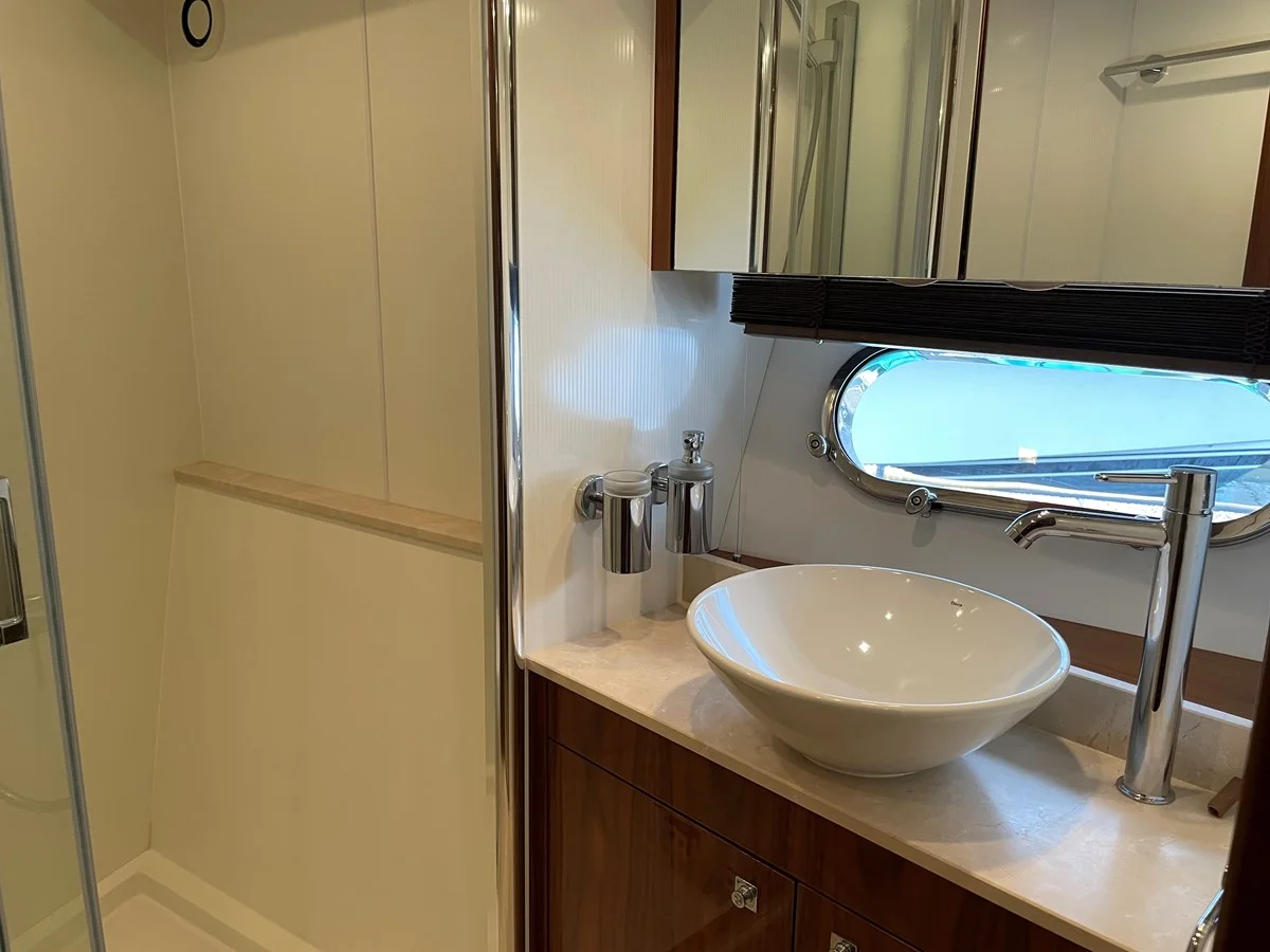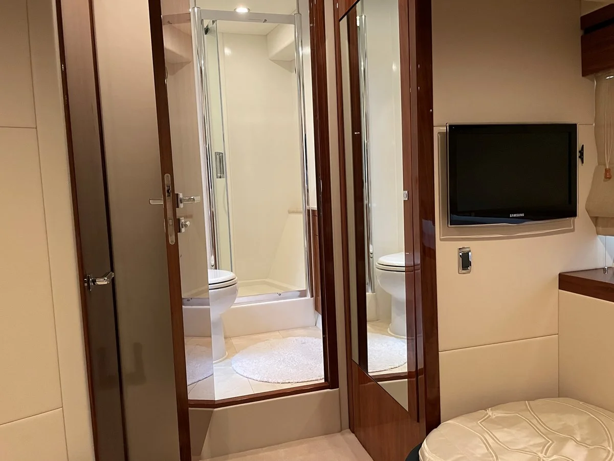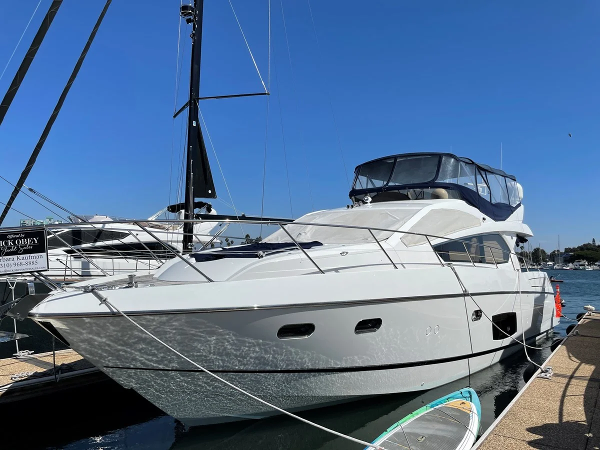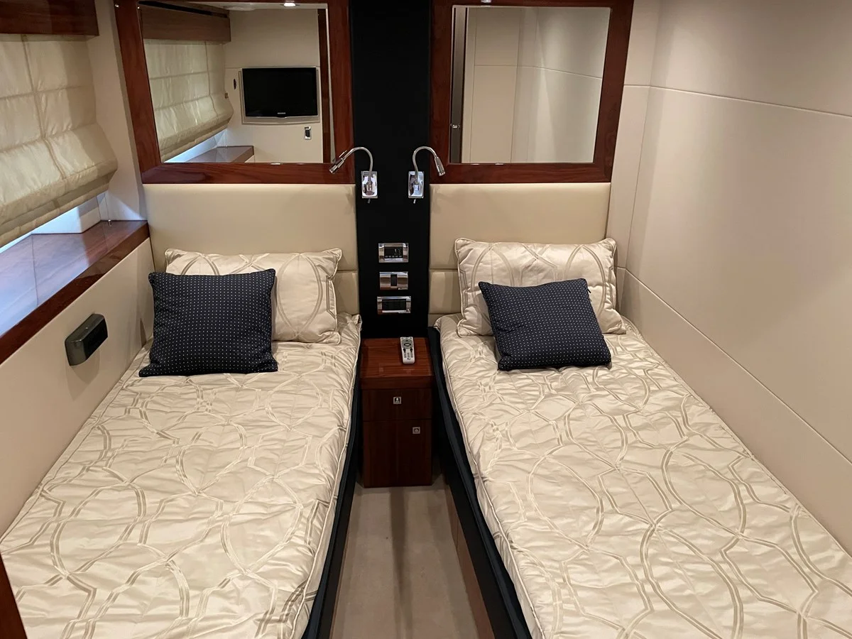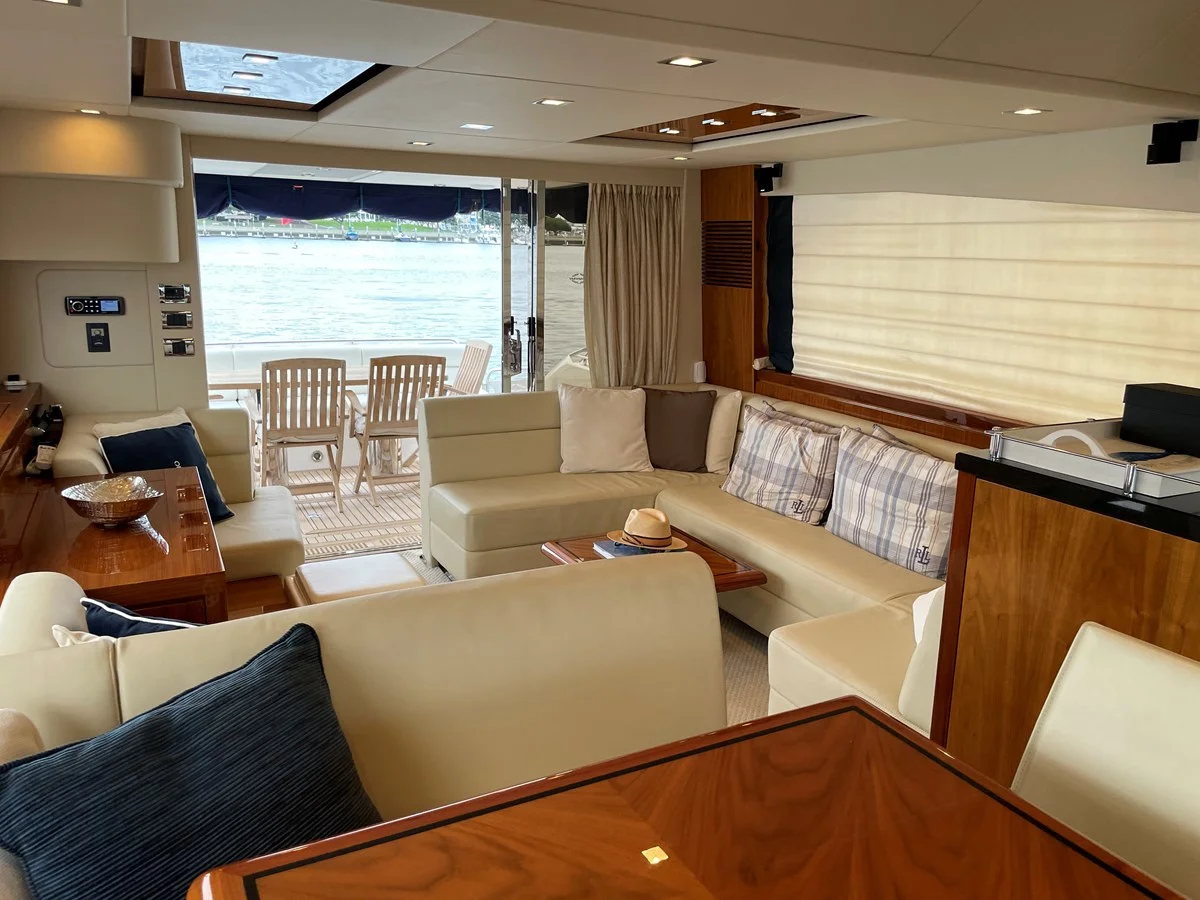 Always professionally maintained with an open checkbook by her experienced and knowledgeable original owner. This 63’ Sunseeker Manhattan 2012 is an exceptional example of a yacht that packs luxury, performance and innovation into a well built frame. Her four cabin, three head layout plus crew quarters can accommodate up to eight guests. Upon entering the saloon of GRACE ELLEN you'll be struck by her bright and spacious feel. Complimented by the soft interior upholstery and the upgraded high gloss finished cherry wood, a wave of tranquility will envelope you and your guests.