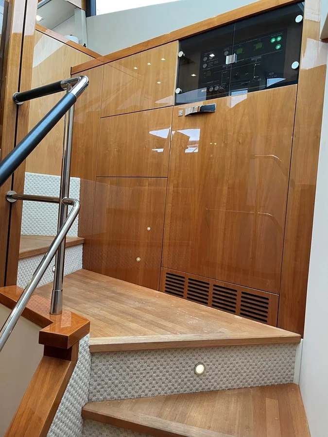 This very well maintained, only 289 hours vessel is powered with Twin Volvo Penta IPS 1200 engines that ensure reliable performance and an exhilarating cruise. Easy to maneuver Joystick Control allows you to confidently maneuver the yacht in tight quarters and while docking.