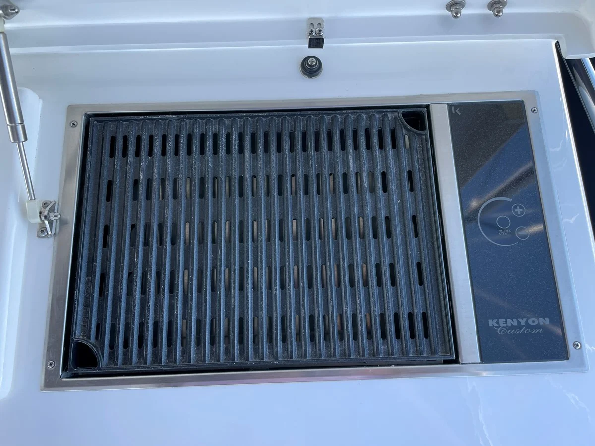 Her spacious saloon, up galley, expansive custom fully enclosed flybridge with power up/down feature, large foredeck, and aft cockpit provide excellent entertainment spaces to socialize and plenty of room for lounging, or al-fresco dining.