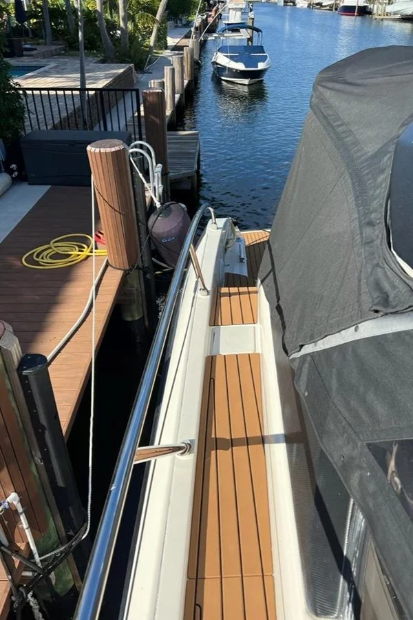 The Soft Top excites you, with an opening of over 1.70 meters and with side windows that are semi-open for perfect ventilation. The cockpit captures your attention. It is connected to the beach platform with two access points and oversized walkways. The lower deck surprises you, with a master cabin that has a central bed and an en-suite bathroom... Everything about this sport cruiser with an elegant soul conquers you.