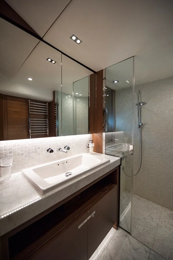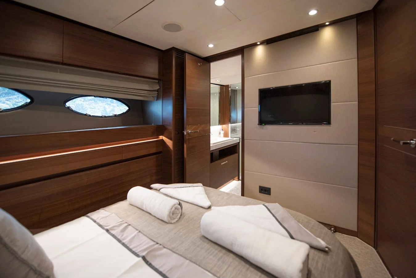 The master cabin is designed as a full beam cabin together with panoramic side windows.