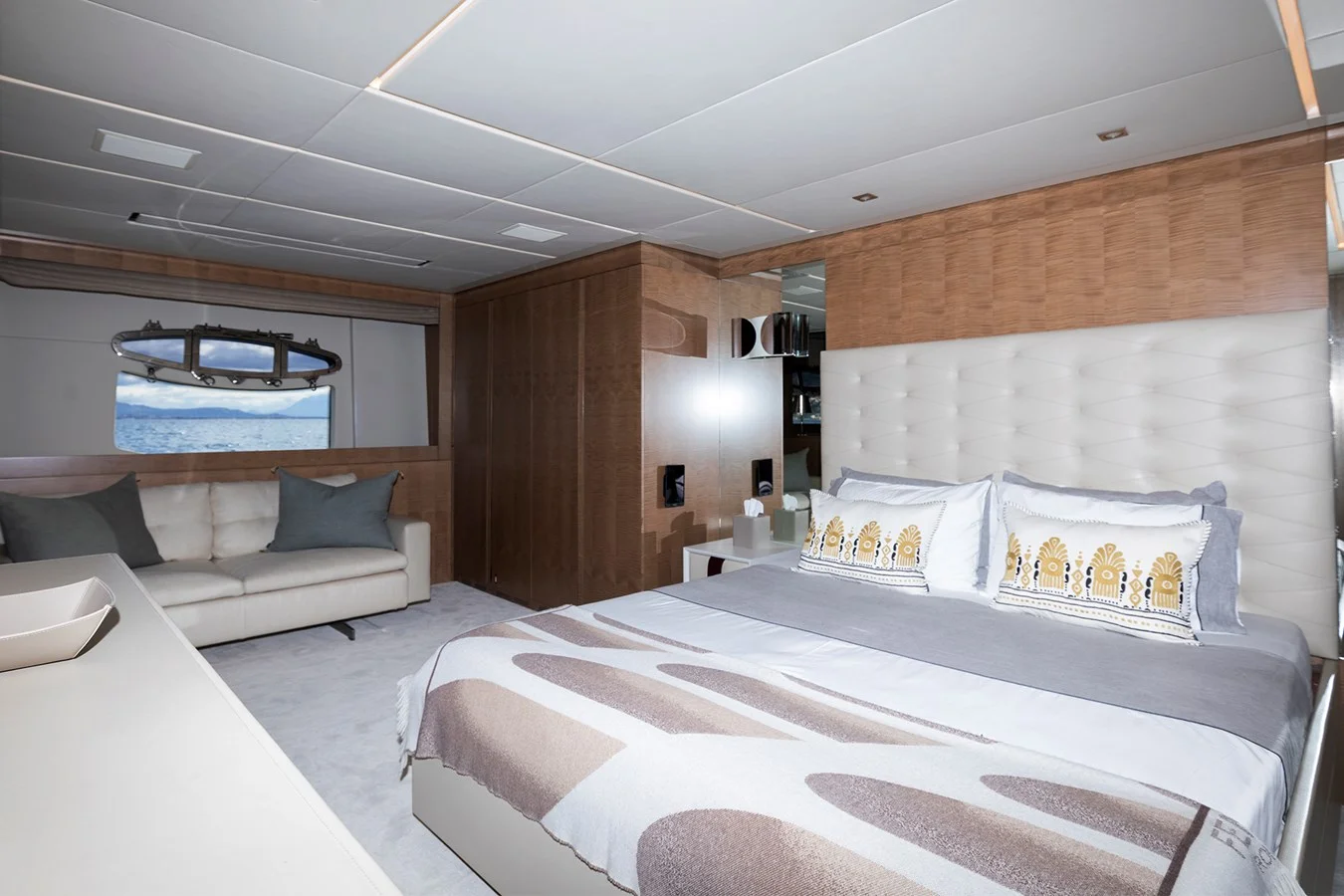 Her interior is equipped with high-end appliances and premium systems, including Miele galley