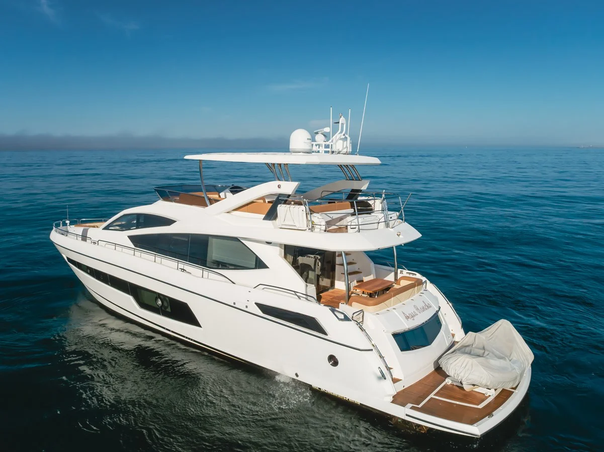 Discover the exquisite AGUA RANCHO, a 2017 Sunseeker 75 that masterfully combines luxury and performance in a sleek, compact design. Perfect for discerning owners, this yacht accommodates eight guests across four beautifully appointed ensuite cabins, including a full-beam master suite designed for ultimate comfort.