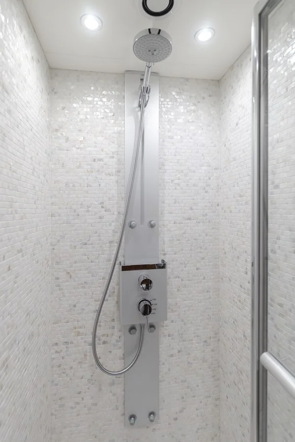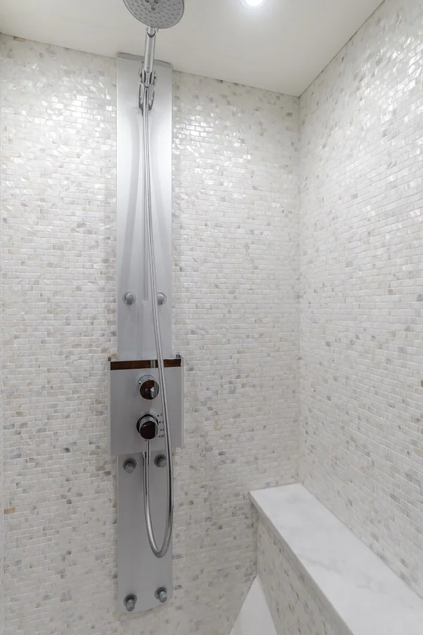 AGUA RANCHO is adventure-ready, featuring a hydraulic swim platform for easy tender launch and a flybridge davit for a jet ski. The aft crew quarters comfortably house two with an ensuite. Freshly upgraded with custom leather diamond-stitched exterior cushions, new covers, and a freshly detailed exterior, she’s in amazing condition.