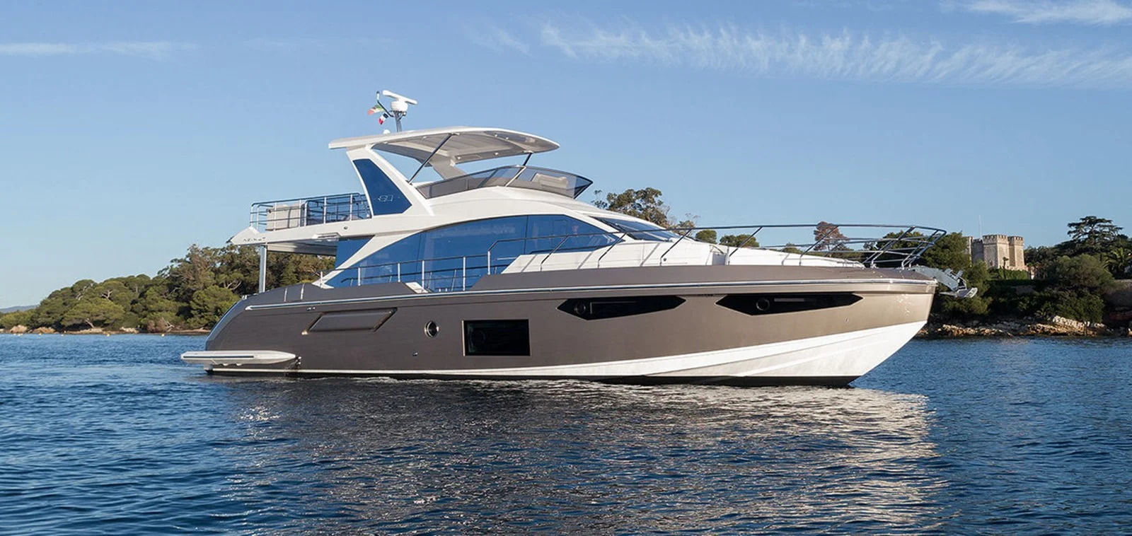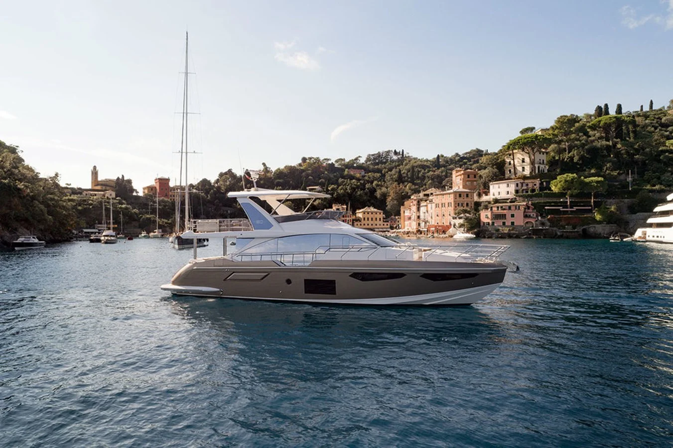 Cockpit table with synthetic marble insertCo-pilot seat on flyElectric awning in cockpitFlybridge table with synthetic marble insert (in lieu of standard teak table)HardTop Lounging on aft fly with two opposite love seats in Batyline fabric and coffee tablePainted hull and gunwhaleSpreader lights on aft flyStern teak steps Sun shade sail on bow with removable polesTeak on flybridgeTeak on side decksTelescopic Gangway Upgrade of external cushions in Batyline fabric INTERIOR