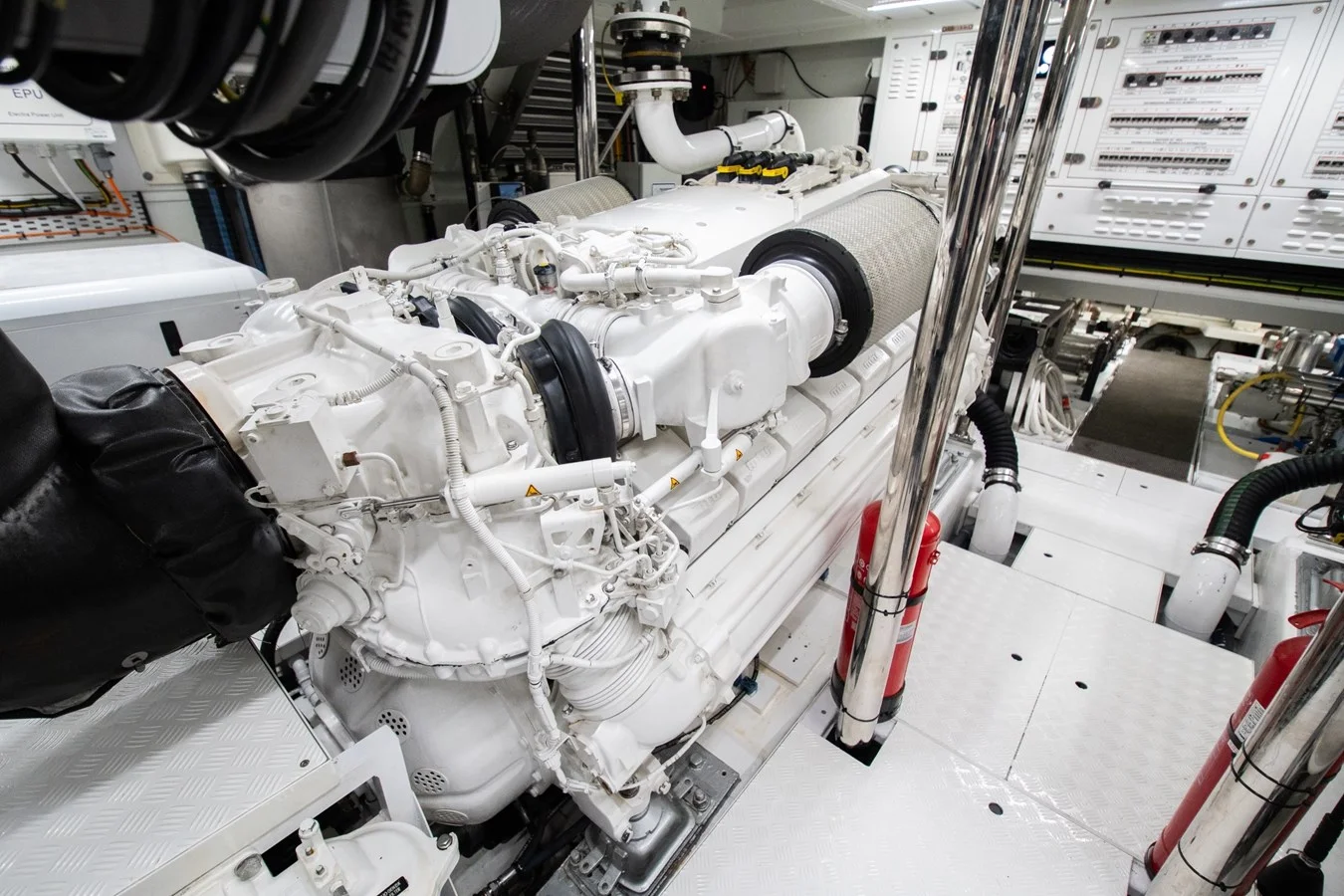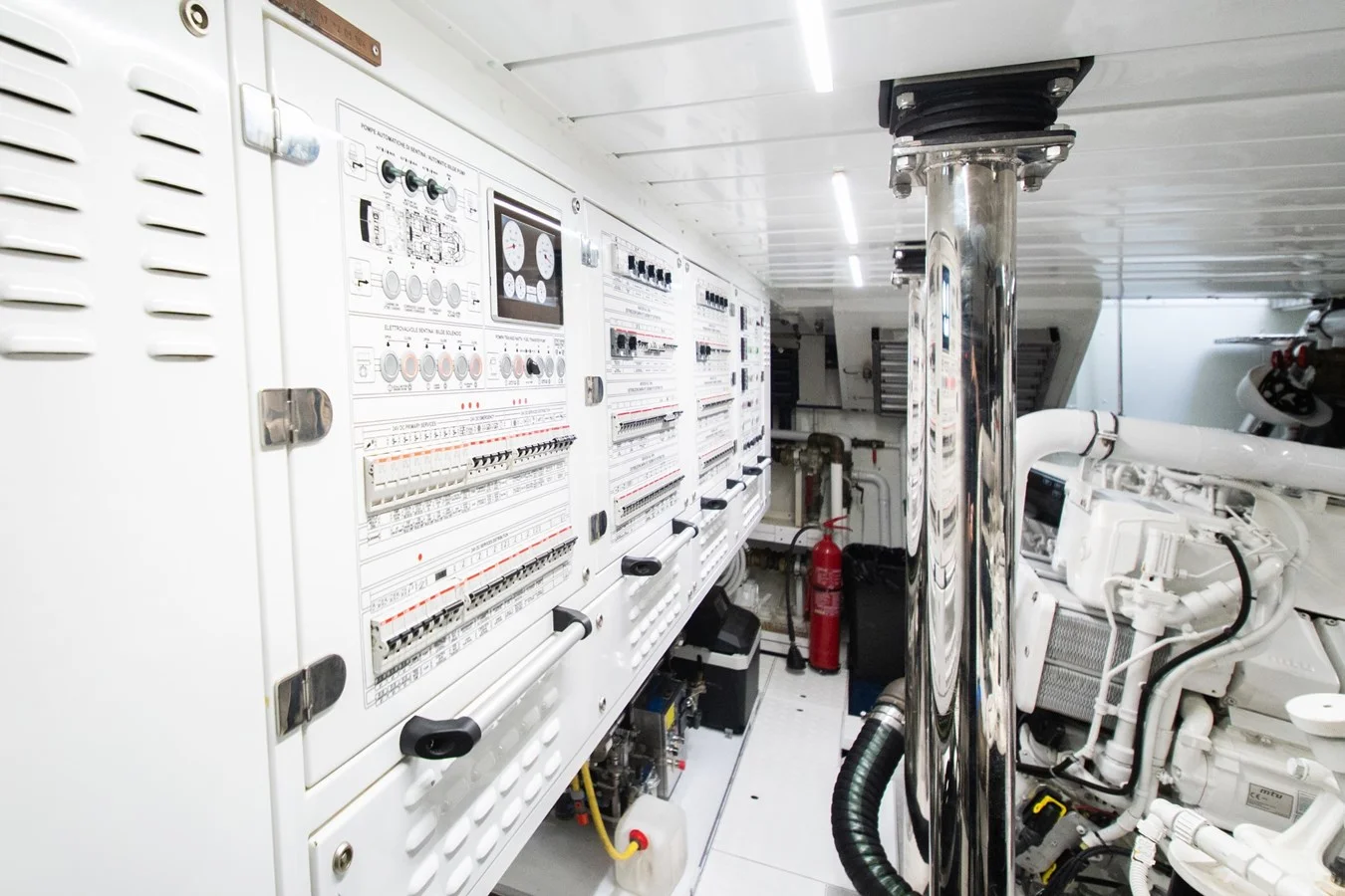 With an impressive range of 1,350 nautical miles at an economical speed of 10 knots, she is perfectly suited for extended cruising. Her generous tank capacities — 12,100 liters of fuel, 1,900 liters of fresh water, a 900-liter black water tank, and an 850-liter grey water tank — ensure independence on long passages. In addition, the yacht features an advanced Sewage Treatment System, enabling purification of black water and safe discharge in compliance with international environmental regulations.