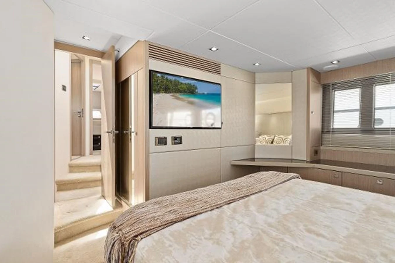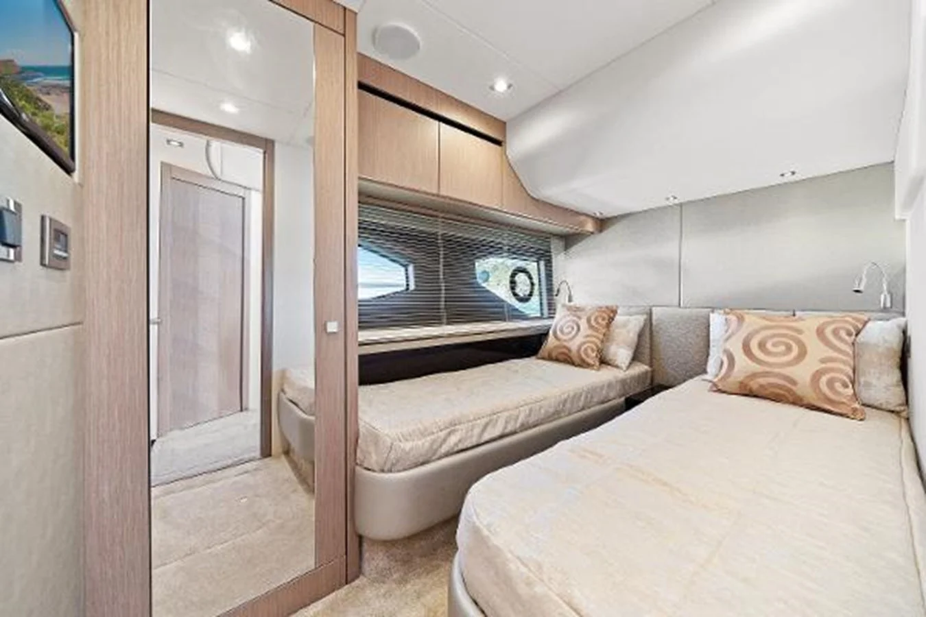 Like New, Immaculate condition! Beautifully designed for maximum light and spacious entertainment areas. Satin finish silver oak interior with Wenge gloss wood accents, 3 Cabin/2 Head layout plus crew aft. Stunning Salon, Spacious Up Galley and Gorgeous Full Beam Master! Powered with twin Volvo Penta D11's @725 hp each. An absolutely exquisite vessel! Looks and smells new with Only 75 hours!