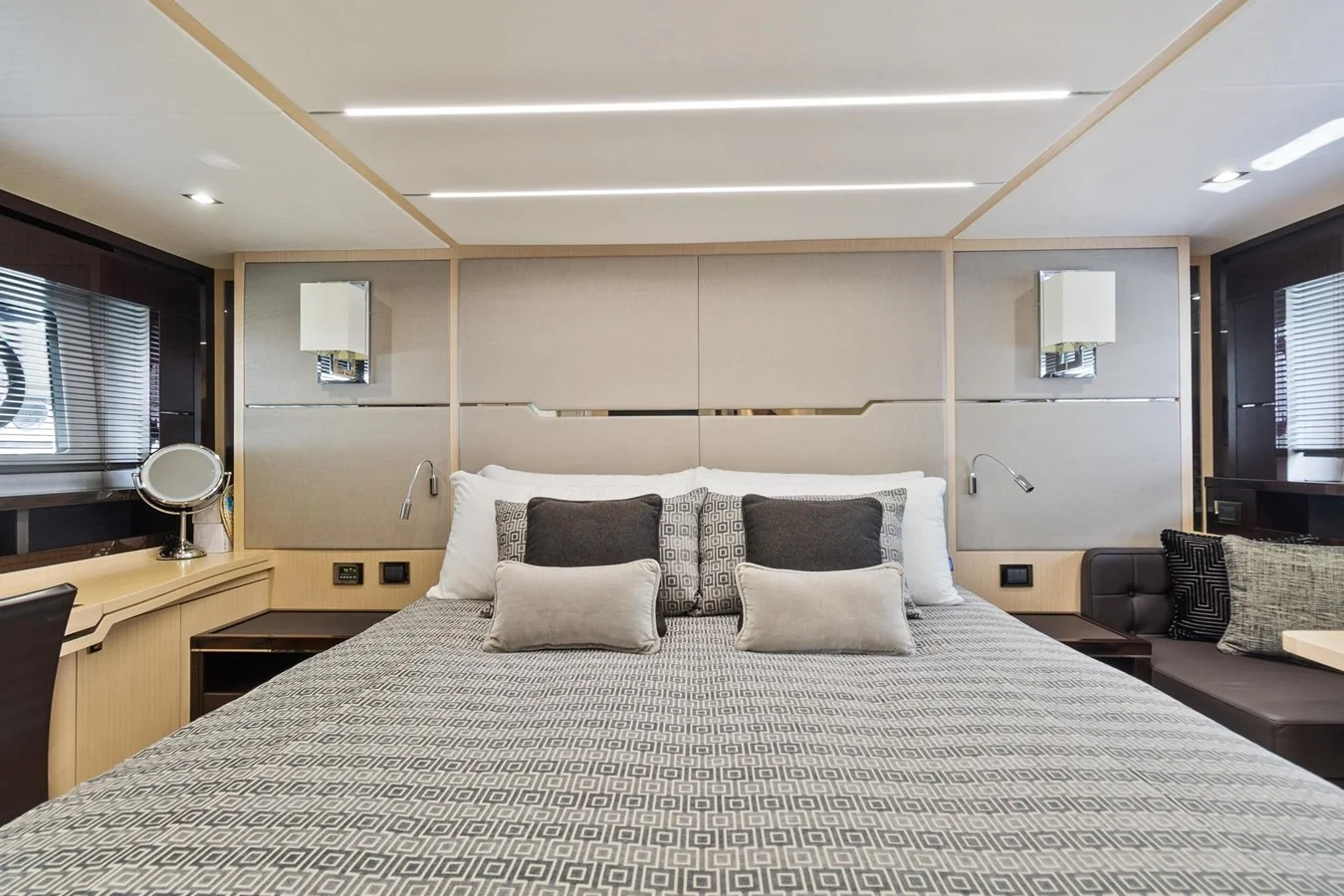 Exquisite interior and captivating design are prominent throughout the entire yacht – a classic example of Sunseeker design ingenuity. The extravagant sliding roof adds a sense of occasion to every journey – especially those undertaken at top speeds. Built to both thrill and inspire, you can’t help but fall for this symbol of success.