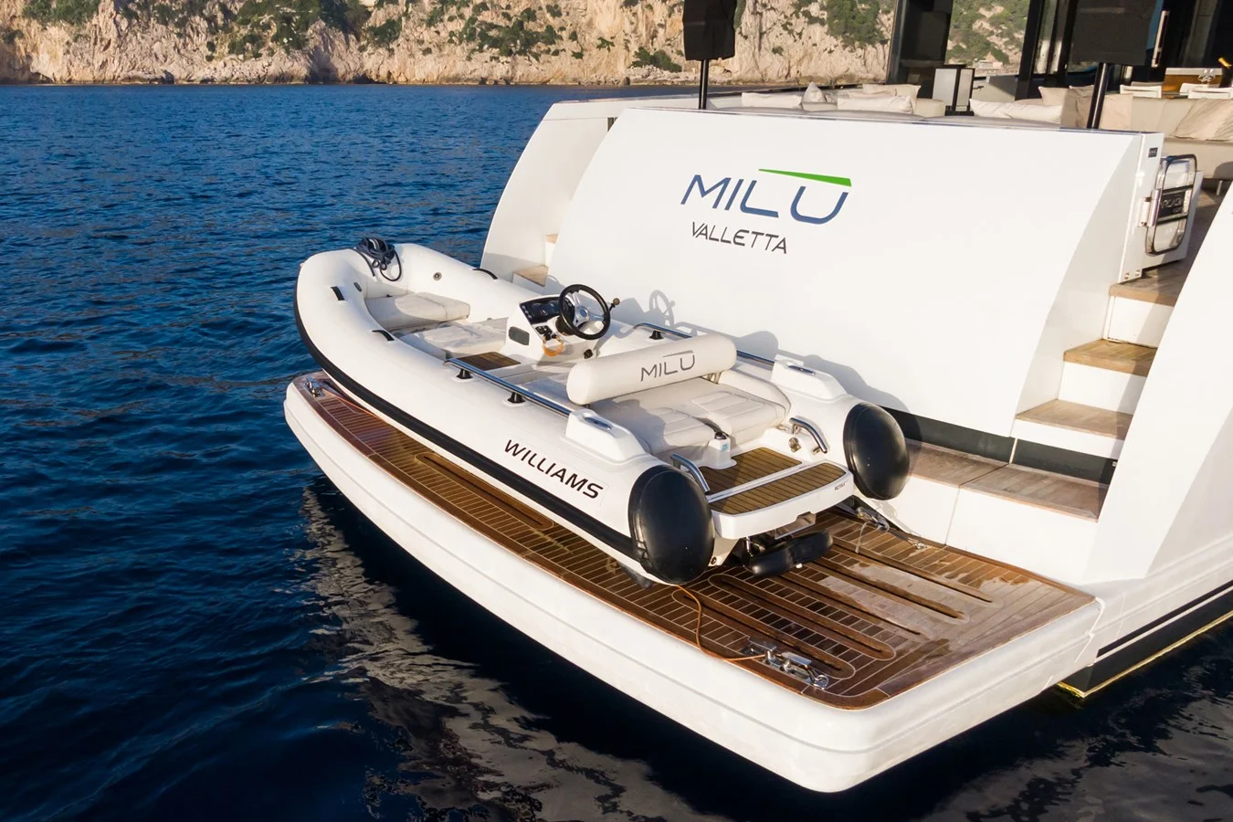 Delivered in 2019, this 25.9m yacht has the largest master quarter in its category - more than 32 square metres of privacy and comfort.MILU' is a loft-style yacht, with very open spaces, accommodating up to 8 guests in 4 staterooms, with 4 crew members waiting on their every need.Having been maintained by the same crew since delivery, and used for private use only, she is in impeccable condition.Fitted with many additional features and only 920 hours on the engines, she is ready to go!Key features:- Extremely well priced- Low engine and generator hours- Boasts many upgrades such as marble in the bathrooms, extra wine cellar, and ice maker- Reinforcement of the swim platform, ability to load the William Tender 395 with the guest onboard (up to 900 kg)- Premium hull and superstructure finish with Awlcraft- Sonos Hi-Fi system- Same crew since delivery - Award-winning design- Fully protected in a covered shed during winter
