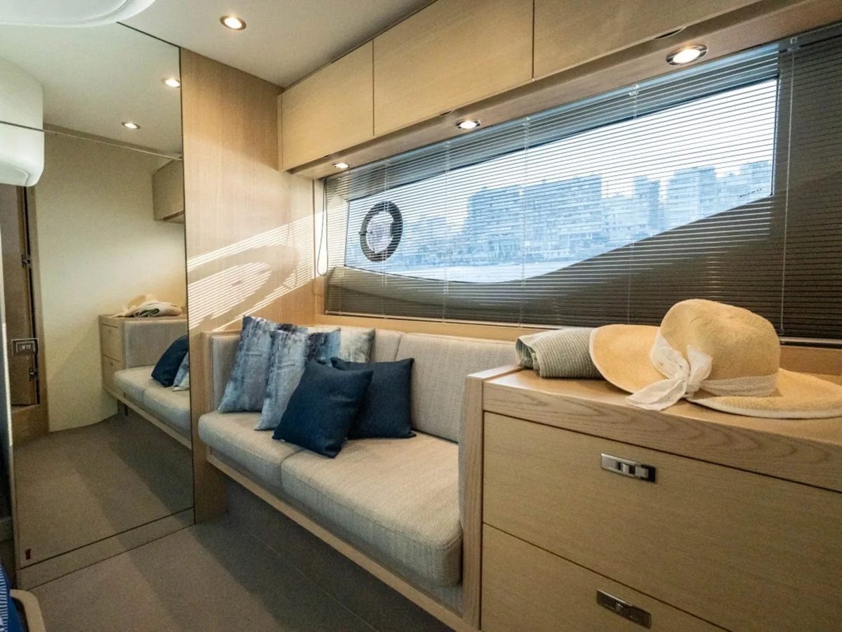 The Princess V40 is the ultimate blend of sporty performance and luxurious comfort, ideal for coastal cruising or extended adventures. With only 270 engine hours, this yacht is in pristine condition and ready for immediate enjoyment.