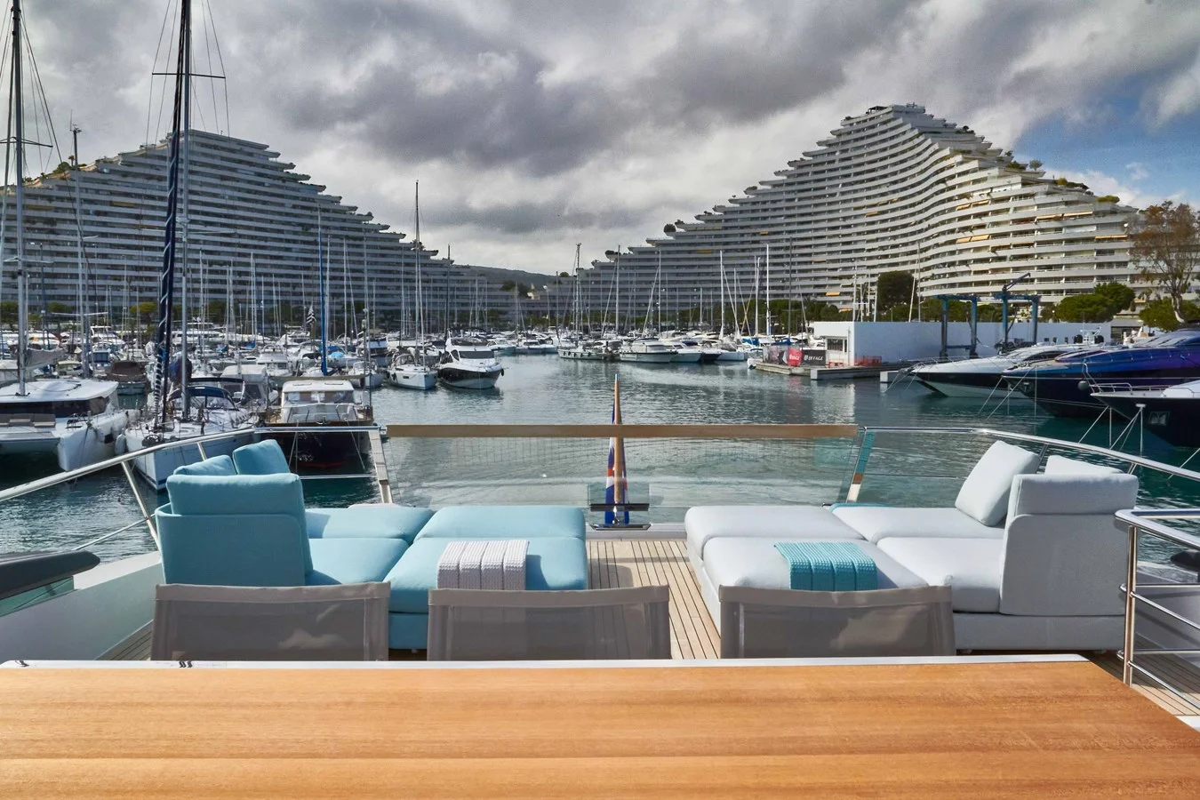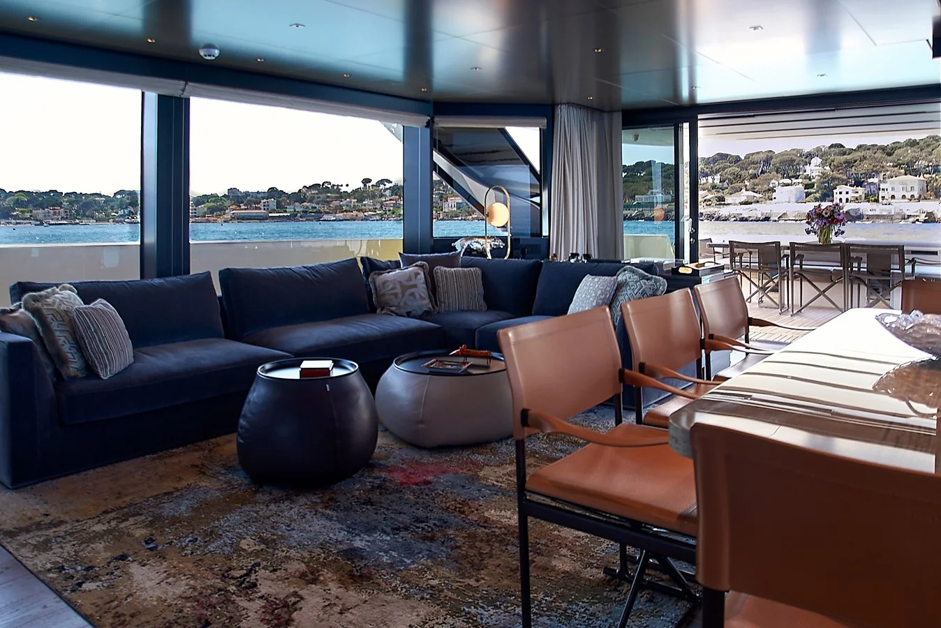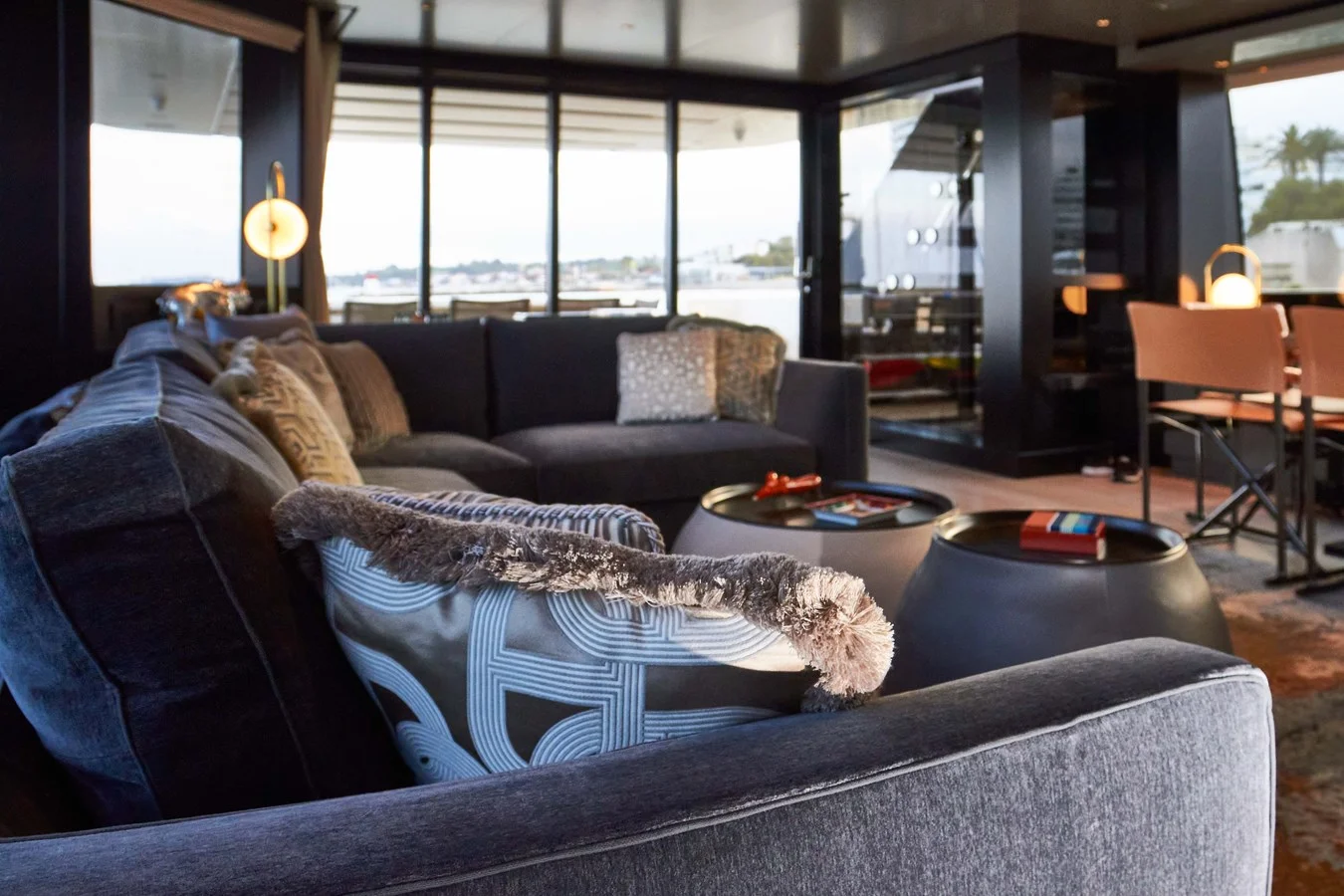 Exterior living spaces reflect the same level of attention to detail, with teak decking, layered lounge areas and carefully selected designer furnishings throughout. The flybridge is arranged as a true social deck, centred around custom bar cabinetry and Paola Lenti Cove seating configurations that create a relaxed, residential feel rarely found on yachts of this size. Flexible shading solutions and multiple dining and sunbathing zones ensure the yacht transitions seamlessly between entertaining, family cruising and longer stays aboard.