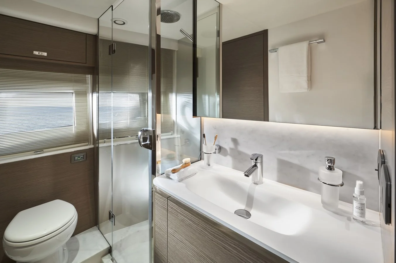 The "Spirit of Rio" stands out with its refined exterior design, featuring sleek and modern lines. Its flybridge is considered one of the most beautiful and spacious in its class, offering the perfect setting for relaxation or entertaining in style.
