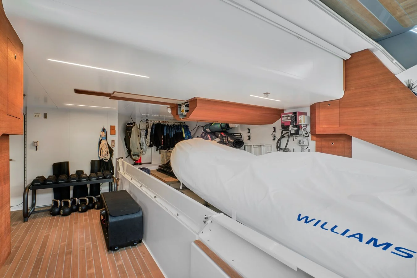 Accommodations include 5 spacious cabins for 11 guests, including a sumptuous full-beam master suite on the main deck, two double cabins, and two twin cabins, all with en-suite bathrooms. The crew has 7 dedicated berths, ensuring impeccable service onboard.