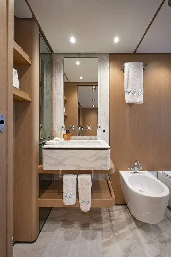 H&CO boasts expansive decks perfect for sunbathing, socialising, and soaking in stunning ocean vistas. Inside, her sophisticated and luxurious interiors offer a peaceful haven, ensuring that every moment aboard is filled with comfort and tranquillity. Outfitted with state-of-the-art amenities, H&CO is designed to meet your every need.