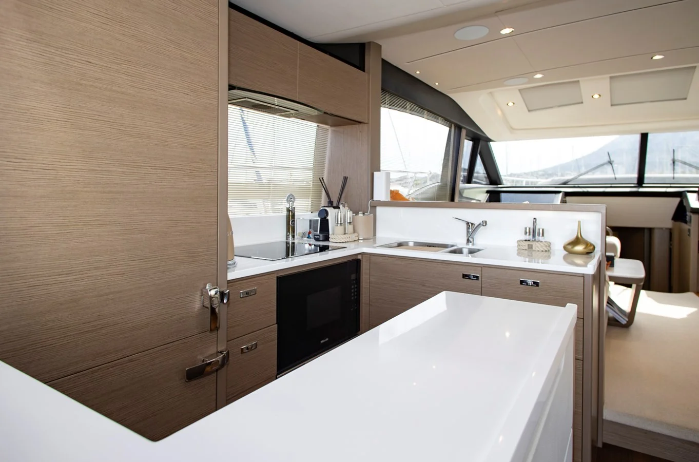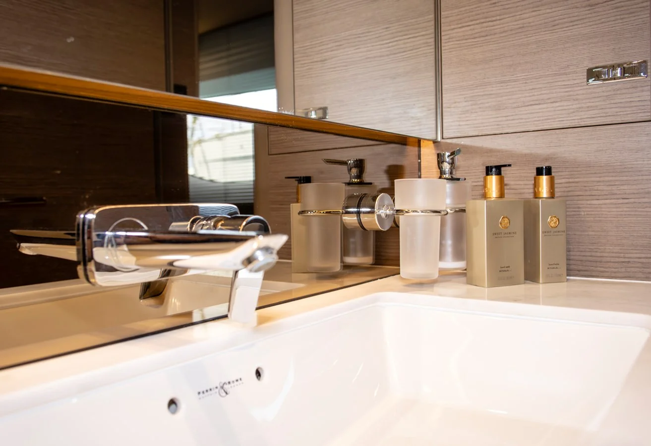 With a generous range of 400 miles, this yacht is ideal for extended voyages.