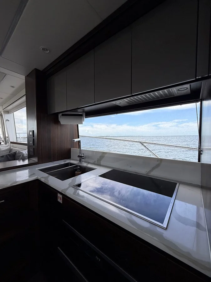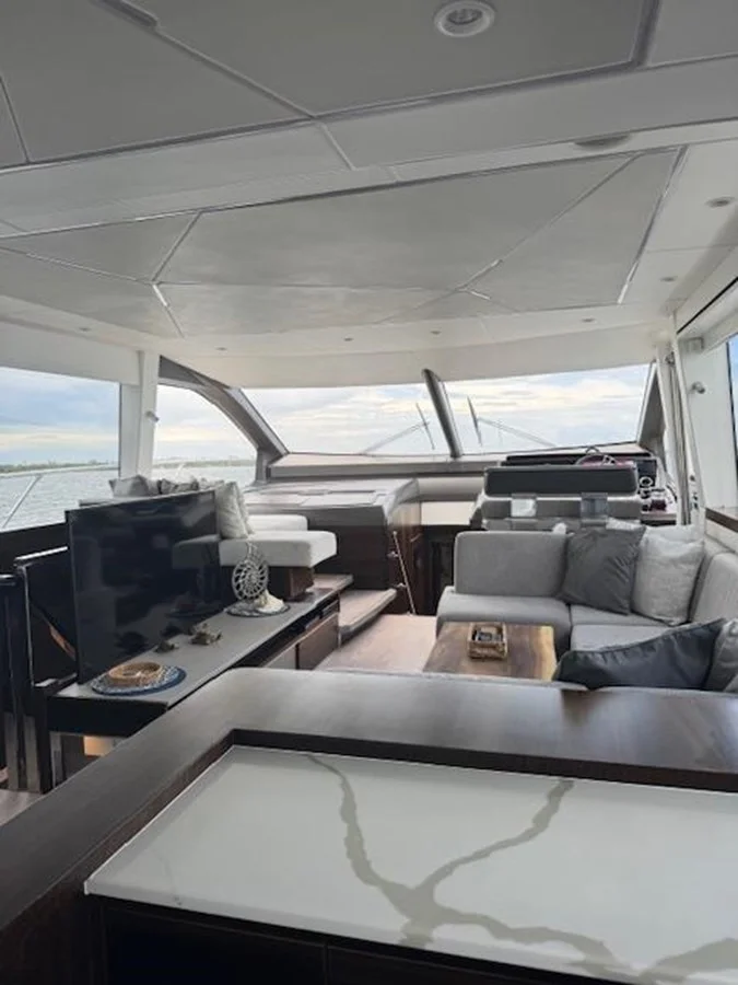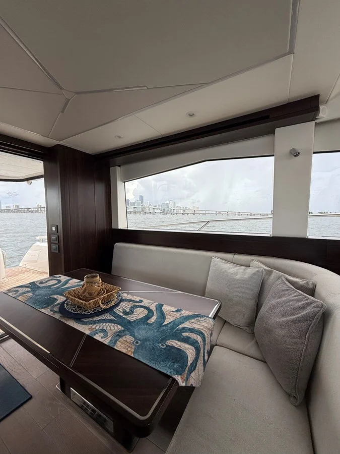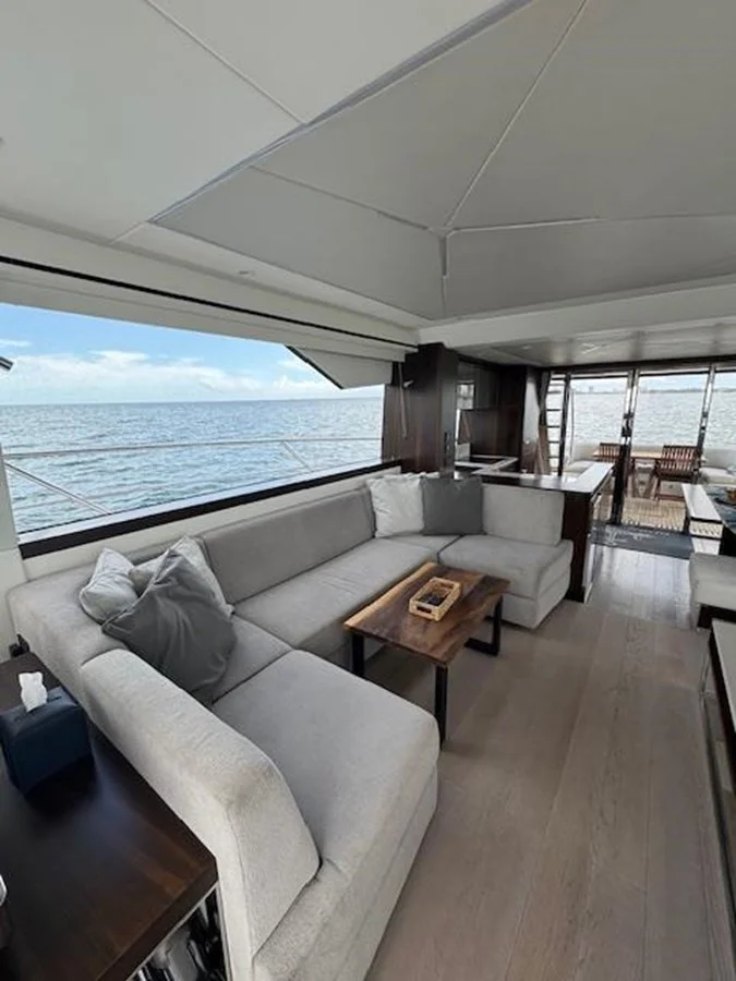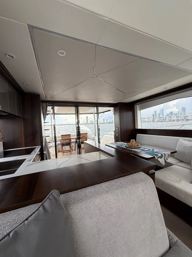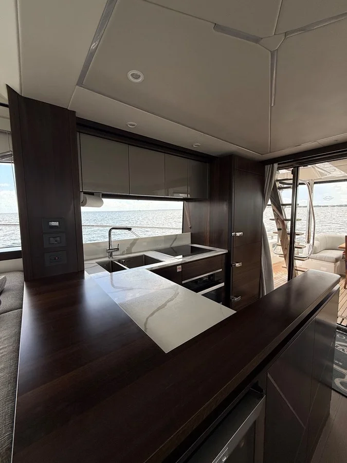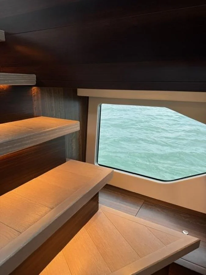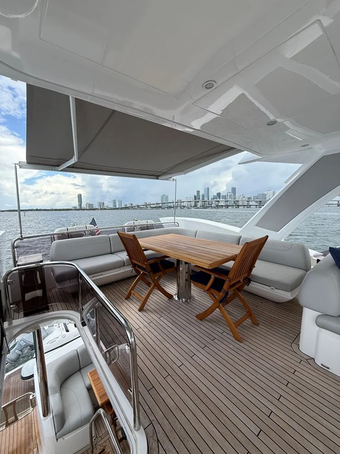 - Impressive Deck Space: Enjoy al fresco dining on the expansive flybridge, complete with a wet bar and sun loungers, or relax in the spacious cockpit with easy access to the sea.