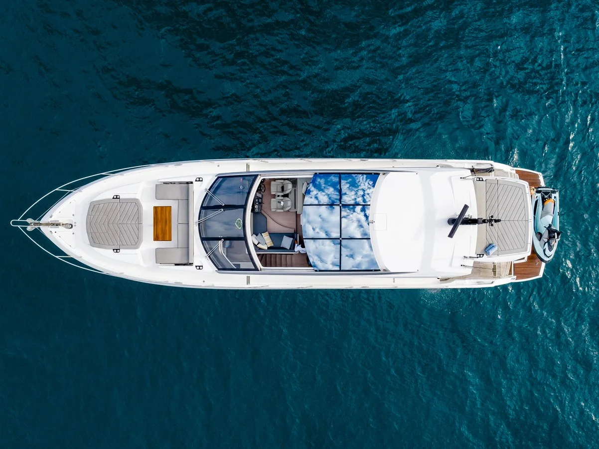 Featuring dramatic styling and numerous luxurious appointments and with powerful 1900 MAN diesel engines reaching speeds of 38 knots!While at Anchor or at Sea she has Sleipner Fin Stabilizers for extra comfort and Aft Docking Station for easy maneuvering.She has the extended BPP 6 year warranties yacht class for engines and generator! Other notable upgrades are Custom Arch which hinges to clear bridges and installation of water maker and wireless controller.The ultimate Yacht with plenty of space on the Aft Cockpit to entertain family and friends and large Garage and Hydraulic Platform for Tender or Jetskis.
