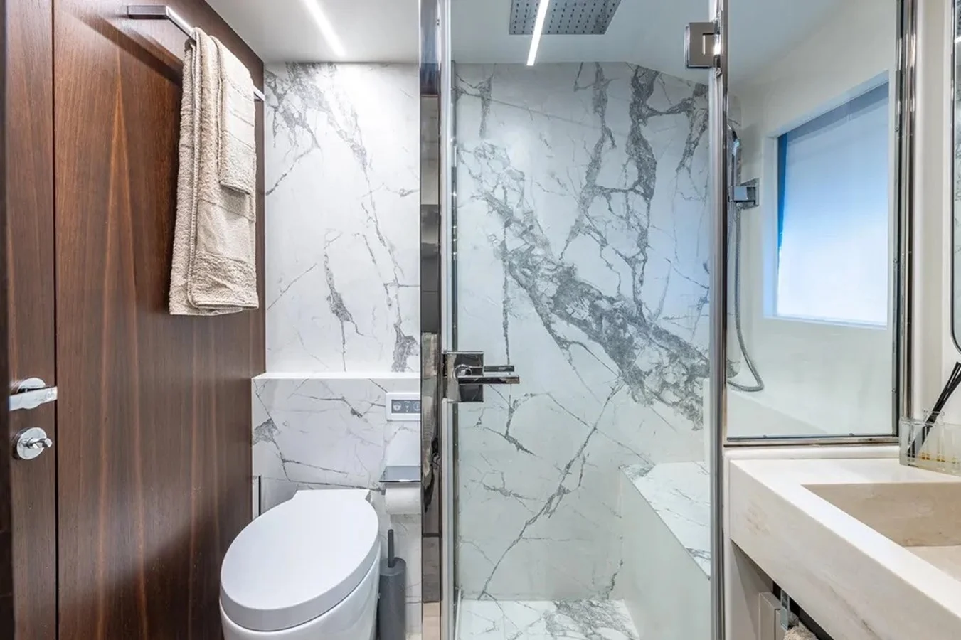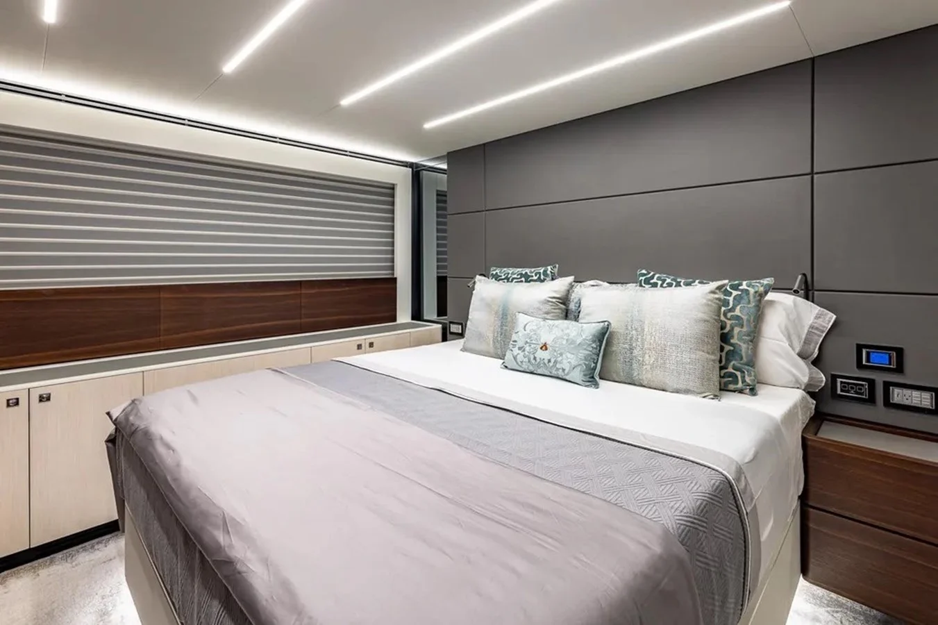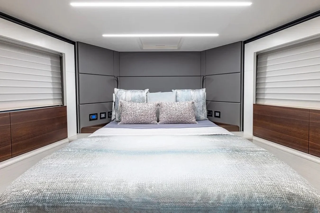 With 4 luxurious staterooms, 3 heads, and a crew cabin, there's ample space for you and your guests to relax and unwind in style. But the excitement doesn't end there! This beauty comes loaded with upgrades, including a flybridge grill, an extra fridge/freezer in the galley, and even a wine cellar for those extra special moments.