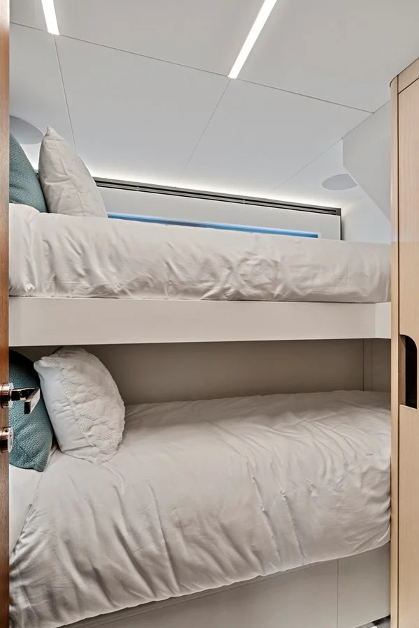 Featuring a spacious and luxurious 4-stateroom layout, this yacht is designed with both comfort and function in mind. The galley is a chef’s dream, offering effortless connection with guests while preparing gourmet meals. Outfitted with high-end appliances, generous counter space, and smart storage, it blends practicality with sophisticated style. The expansive flybridge is built for both relaxation and entertainment. With sweeping views, plush seating, and a wet bar, it serves as your private retreat on the water—perfect for hosting or enjoying the sun in solitude. Inside, the 4-stateroom configuration ensures comfort and privacy for every guest on board.