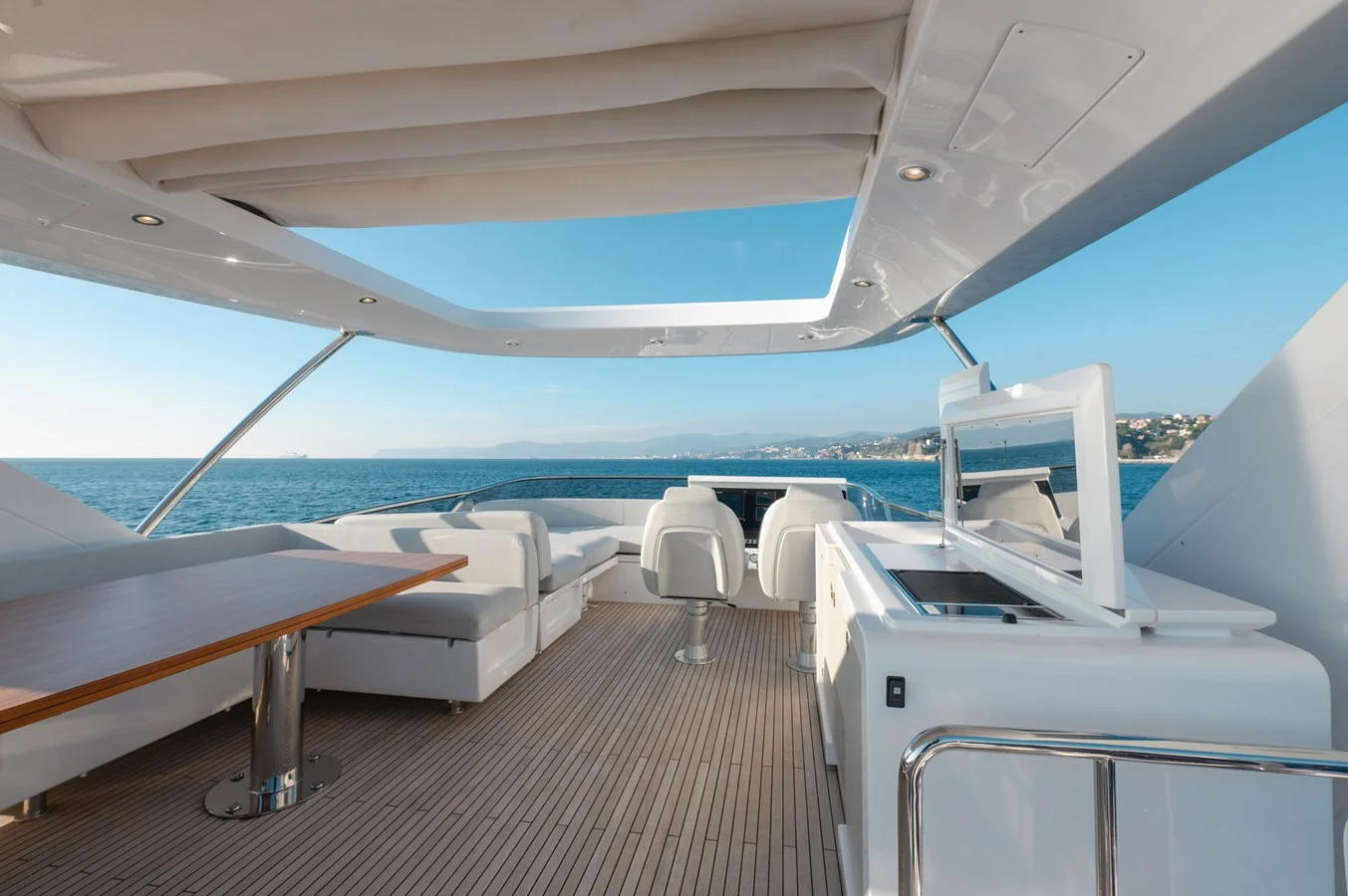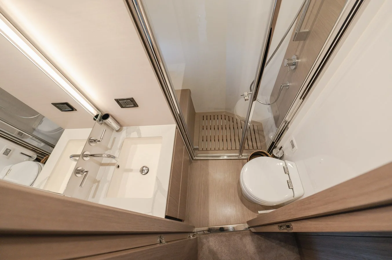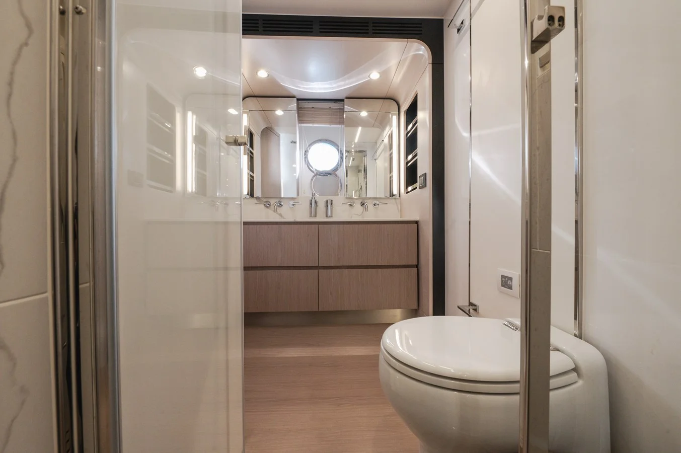 CapacitiesElectricity: 12/24/240 50 HzBow Thruster: YesStern Thruster: NoShore Power: YesBatteries: House, Generator, EnginesAir Conditioning: Zoned air conditioning throughoutStabilisers: Seakeeper 18 – underway and at rest Tank Capabilities