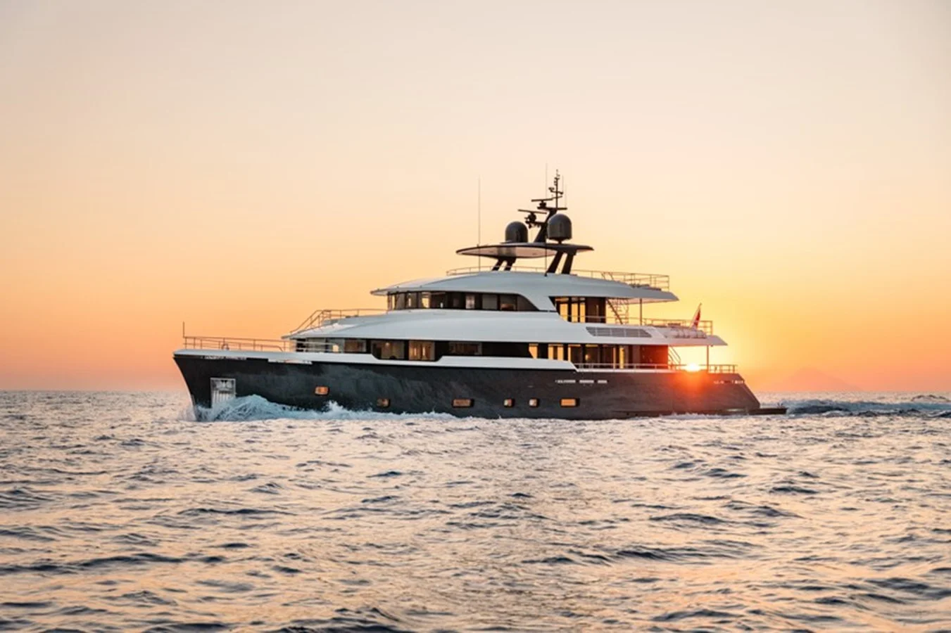 The 124 Martinique model's fast-displacement hull is built from high-tensile steel, delivering a lighter yacht without compromising strength or comfort. Designed by Rene van de Velden with naval architecture by Diana Yacht Design, COCOON combines a timeless, elegant profile with a smart layout and premium onboard comfort.