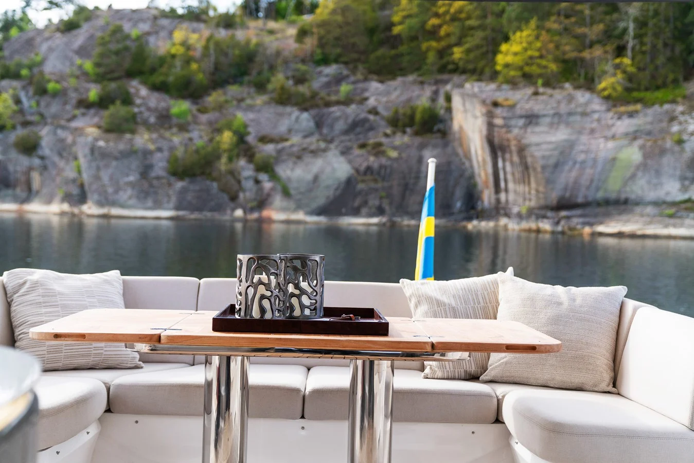 COLOUR SCHEMEColour scheme selected from the Quartz VIII or Milan IX range of fabrics Square quilted Blankets with linenBespoke helm seat designUpgrade to Elements Symphony Paris carpetsLoose carpet lower helmLoose cushions and throwsUpgrade cockpit sofas fabricLight leather on passenger sofa backrest saloonTop bed mattrass in master stateroom and fwd cabin