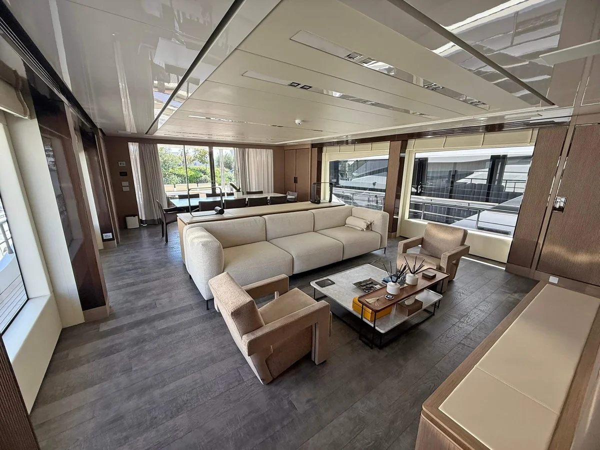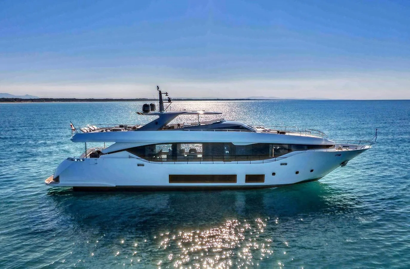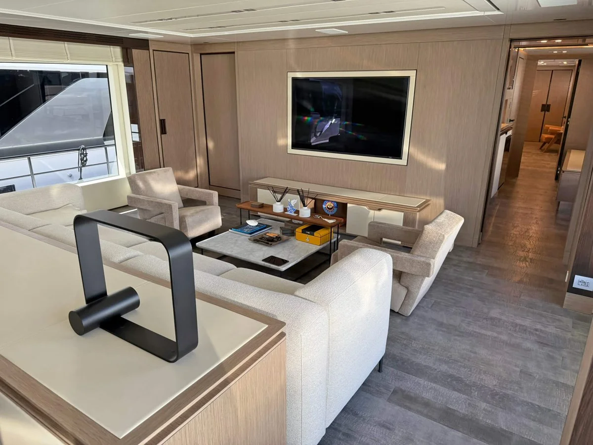 Maiora 30 Walkaround (2024), a 30.5-meter motor yacht that redefines luxury, elegance, and performance. With a sleek walkaround design, this yacht boasts full ceiling-to-floor windows, flooding the interior with natural light while offering stunning panoramic sea views. Accommodating up to 10 guests in 5 opulent cabins and 5 bathrooms, plus 3 crew cabins for up to 5 crew members, the layout ensures both comfort and privacy. The master cabin is conveniently located on the main deck, while 2 VIP cabins and 2 guest cabins are found on the lower deck, providing a spacious and versatile sleeping arrangement for guests.The yacht’s technical excellence is underscored by its powerful propulsion system, driven by twin MAN V12-2000 engines, each delivering 2000hp, paired with ZF V-drive gearboxes. This configuration allows for a maximum speed of 22 knots and a cruising speed of 19 knots. Onboard systems are powered by two KOHLER generators, each with a capacity of 45 kW, ensuring smooth operation of all essential equipment..With a beam of 7.5 meters and a draught of 2.1 meters, the yacht offers generous interior volume, totaling an approximate displacement of 110 tons when fully loaded. Its fuel capacity of 12,500 liters and water capacity of 3,000 liters ensure extended cruising without the need for frequent stops.Every element of the Maiora 30 Walkaround (2024) reflects a commitment to luxury, innovation, and seaworthiness. This like-new yacht presents an exclusive opportunity for discerning buyers seeking a ready-to-sail vessel of the highest caliber.