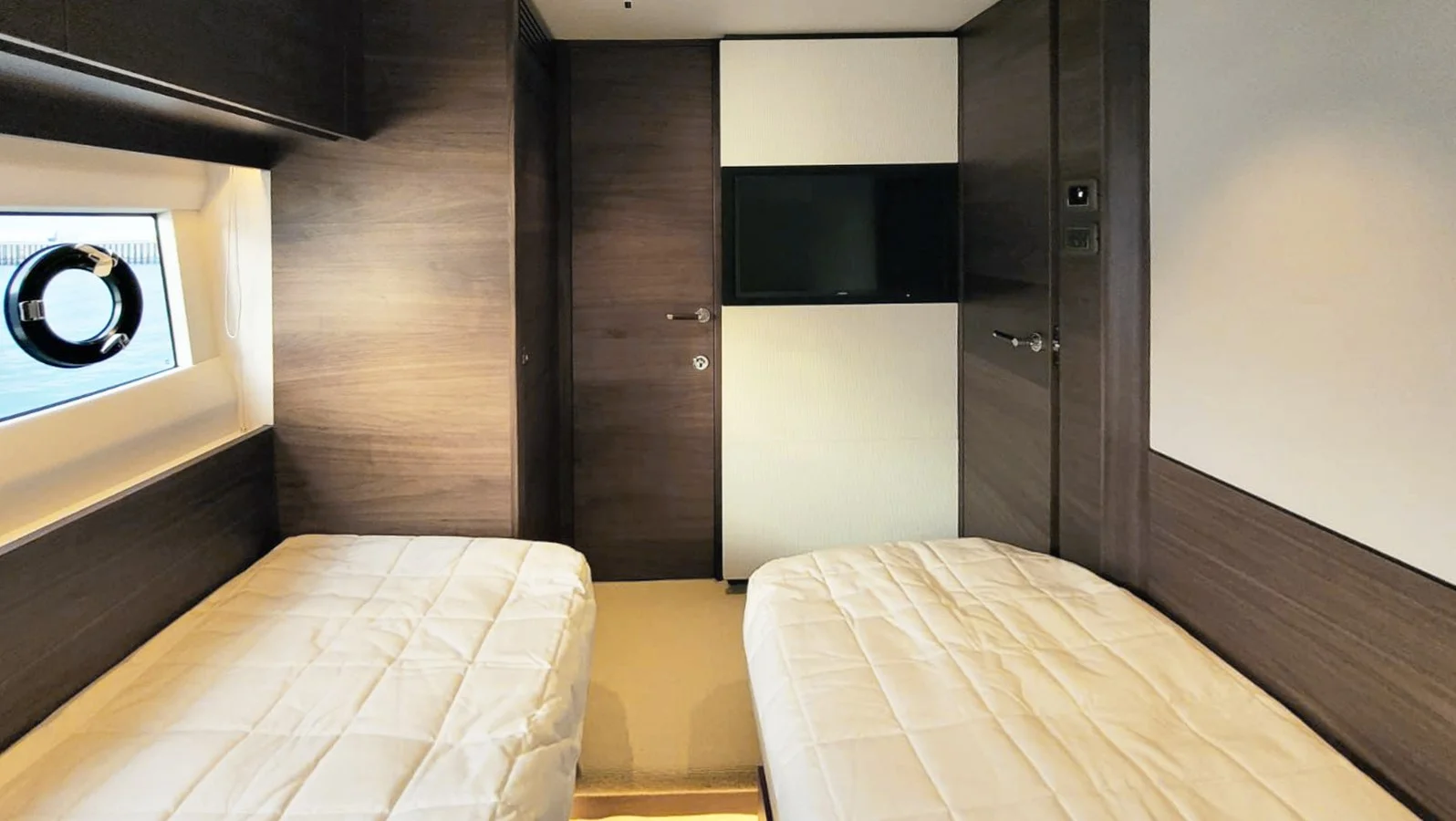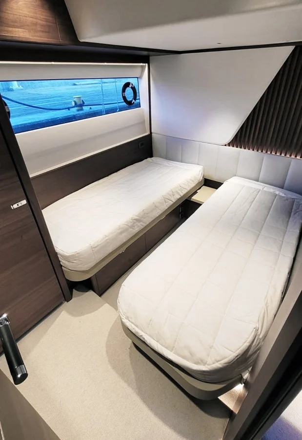 Convertible twin cabins (port & starboard) with electric sliding berths