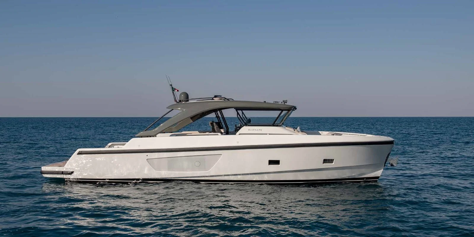 The 360° open cockpit draws you into the view, while the sleek hardtop gives access to an elevated sunpad. At the helm, the signature reverse windshield delivers unbeatable visibility and that unmistakable Bluegame feel.